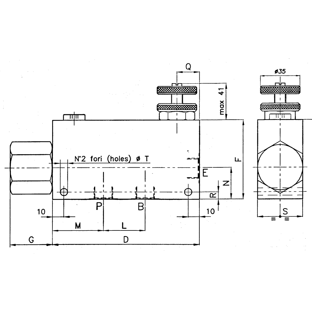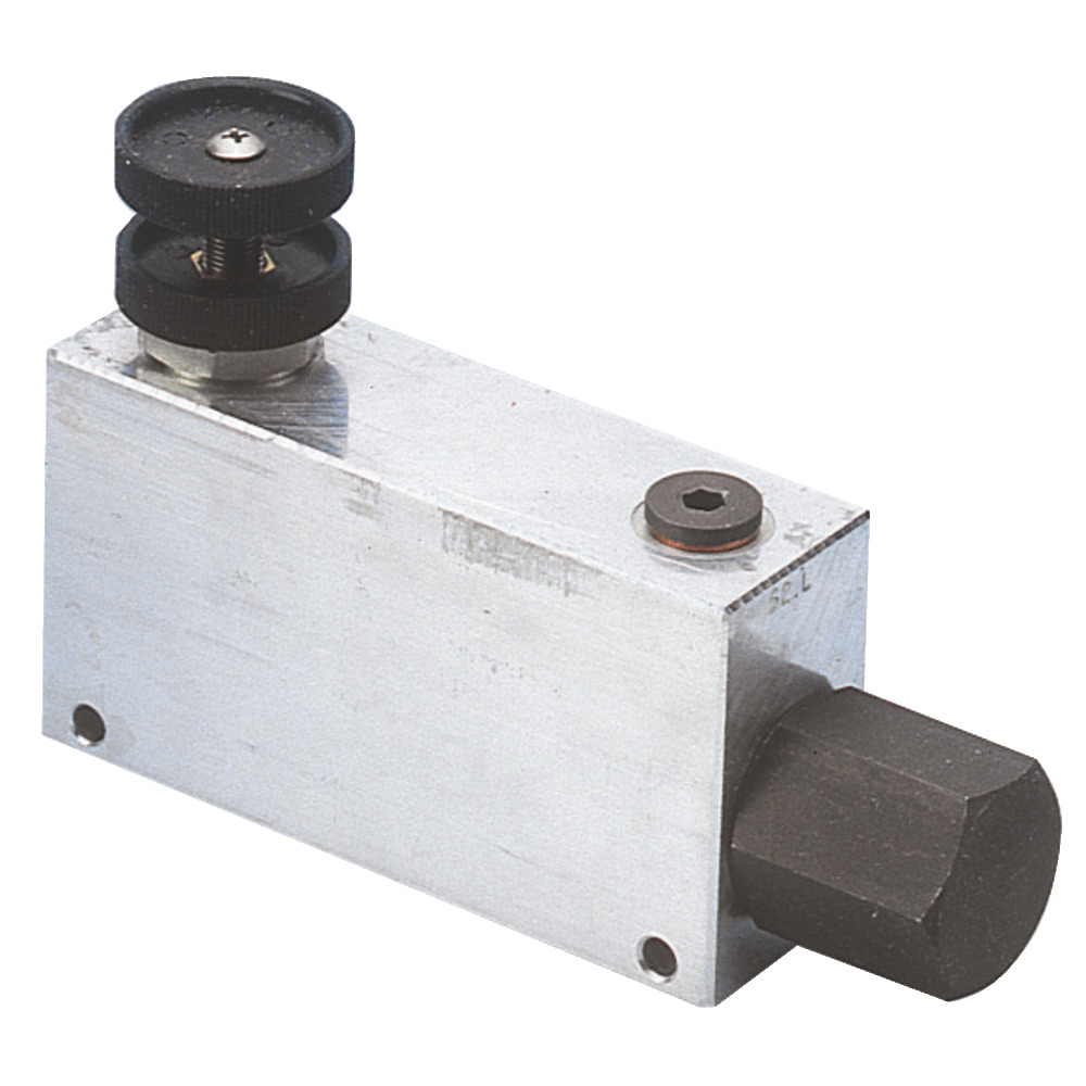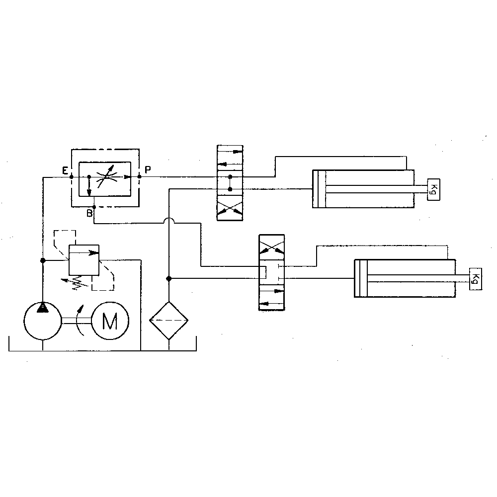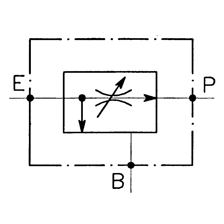 Aus einer Rohrleitung mit großer Fördermenge kann eine Teilmenge entzogen werden, die belastbar ist. Z.B. zur Versorgung zweier getrennter Hydraulikkreise mittels einer großen Hydraulikpumpe. Anschluss P hat Vorrang. Anschlüsse: E=Pumpe, P=einstellbarer Vorzugsstrom, B=Restmenge, QE=max. Eingangsmenge, QP= max. geregelte Ausgangsmenge an Anschluss P.Max Druck 210 bar.
