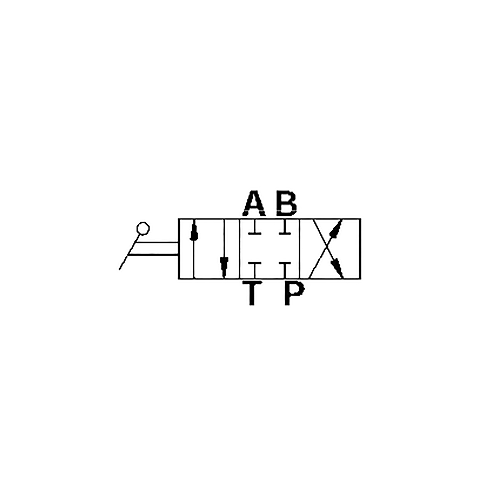 Das handbetätigte 4/3-Wegeventil INV hat die Funktion eines hydraulischen Steuerventiles. Das Umschaltventil kann zur Ansteuerung eines doppeltwirkenden hydraulischen Verbrauchers wie z.B. eines doppeltwirkenden Hydraulikzylinders verwendet werden. Das 4/3-Wegeventil ermöglicht die Umschaltung des Ölflusses vom Anschluss A auf Anschluss B.In der Mittelstellung sind alle Anschlüsse geschlossen. In dieser Schaltstellung ist der Durchfluss durch das Ventil gesperrt.