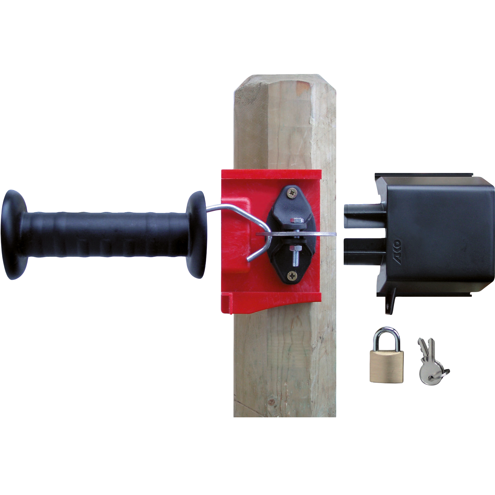 Der Torgriff ist somit fest im verschlossenen Sicherheitsgehäuse verankert und nur Befugte erhalten Zugang zur Weide.