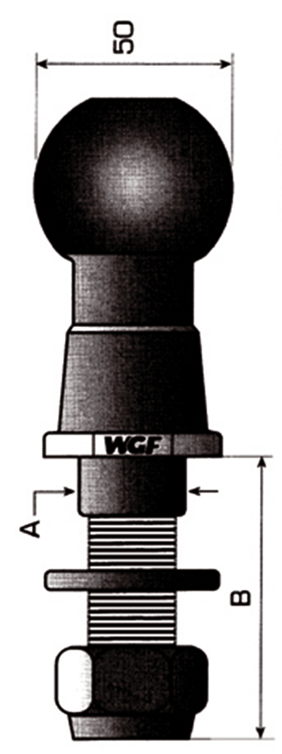 Geprüft nach DIN 74058 und ISO, komplett mit selbstsichernder Mutter, verzinkt, zulässige Anhängerlast 3500 kg, Stützlast 100 kg, Gewinde M22x1,5, A: 26 mm, B:65 mm.