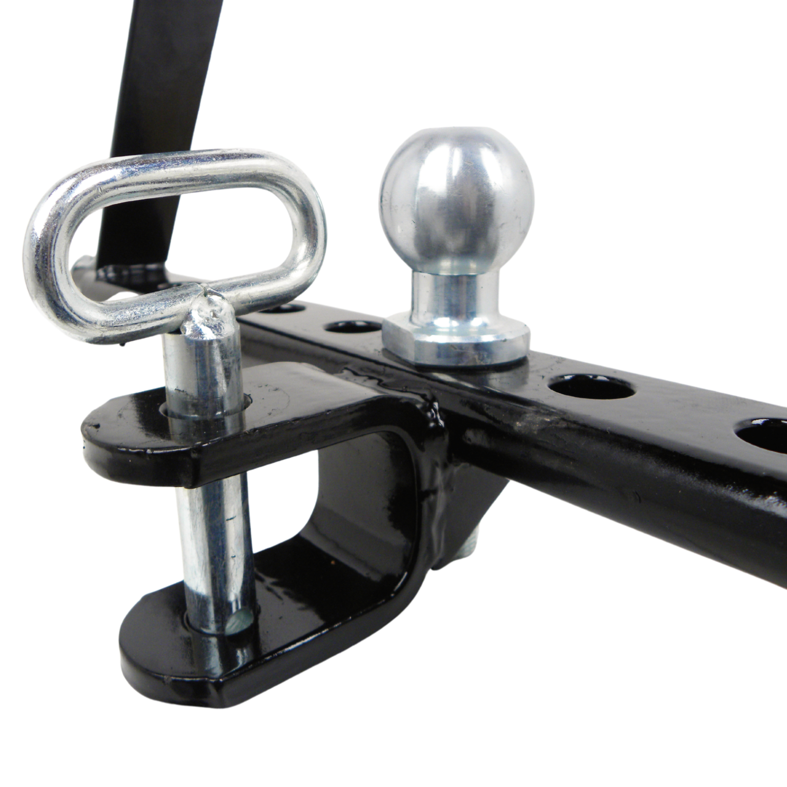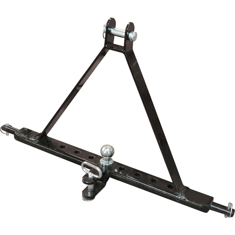 Mit Anhänger-Kugelbolzen 50 mm und Anhänger-Zugmaul, verdrehsicher, Ackerschiene 932 mm, 9 Bohrungen 28 mm, nicht homologiert (keine StvO Zulassung). Mit dem Ackerschienendreieck Kat 2 können Sie Anbaugeräte an Ihren Traktor/Schlepper anhängen. Das Dreieck hat sowohl einen Anhänger-Kugelbolzen K50 sowie ein Anhänger Zugmaul. Das Ackerschienendreieck ist verdrehsicher und beugt somit Unfälle vor. Es wird sowohl an den Unterlenkern, als auch am Oberlenker befestigt.
