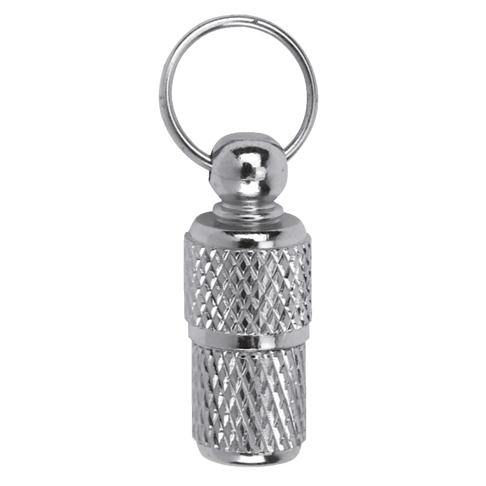 In der Tube können wichtige Informationen auf einem Blatt Papier notiert und am Halsband Ihres Tieres befestigt werden (z.B. Adresse, Name, Telefonnummer…). Aus Metall, mit Anhängeöse. Länge: 22 mm, Farbe: silber