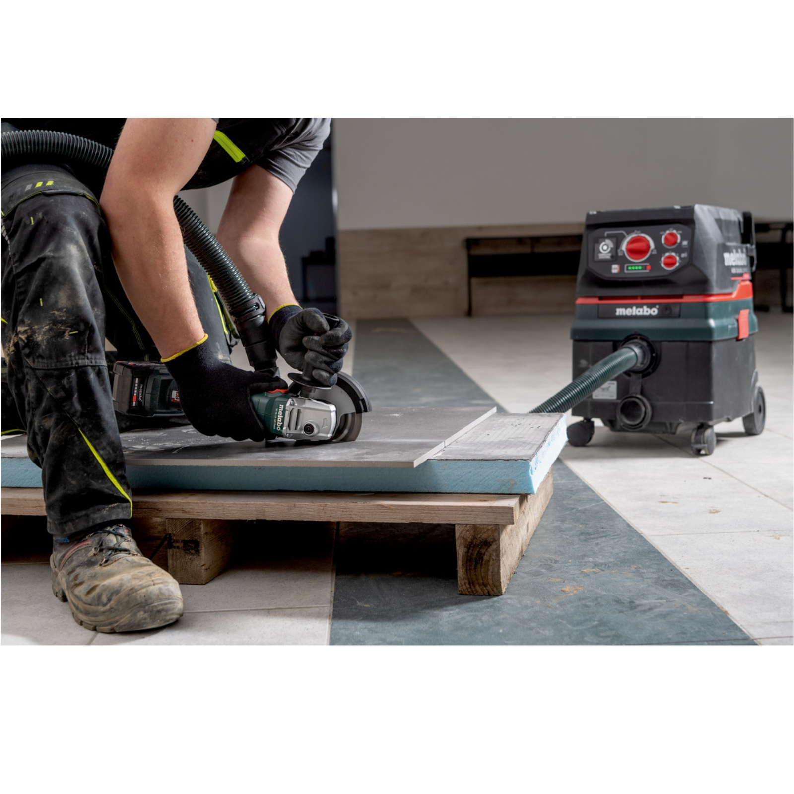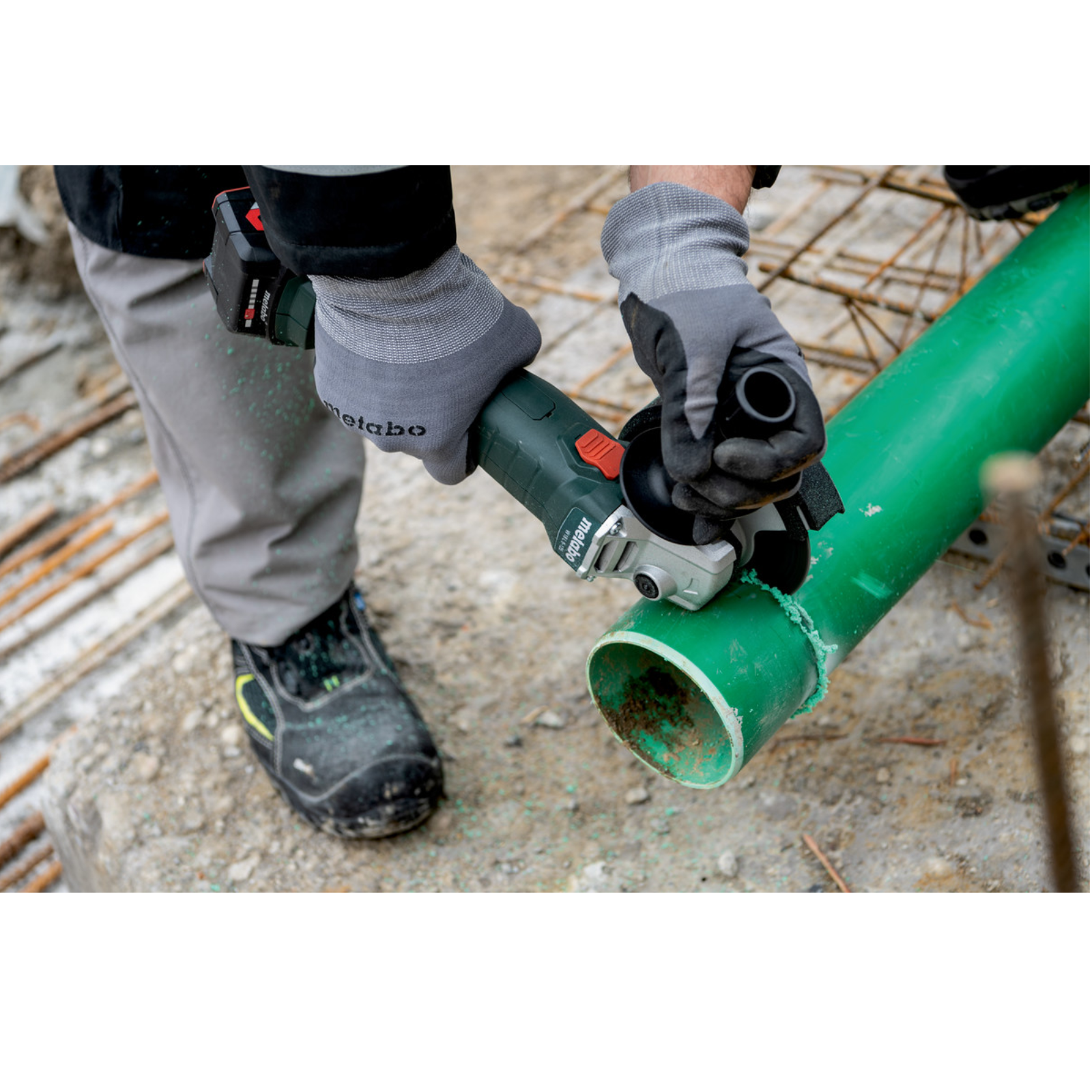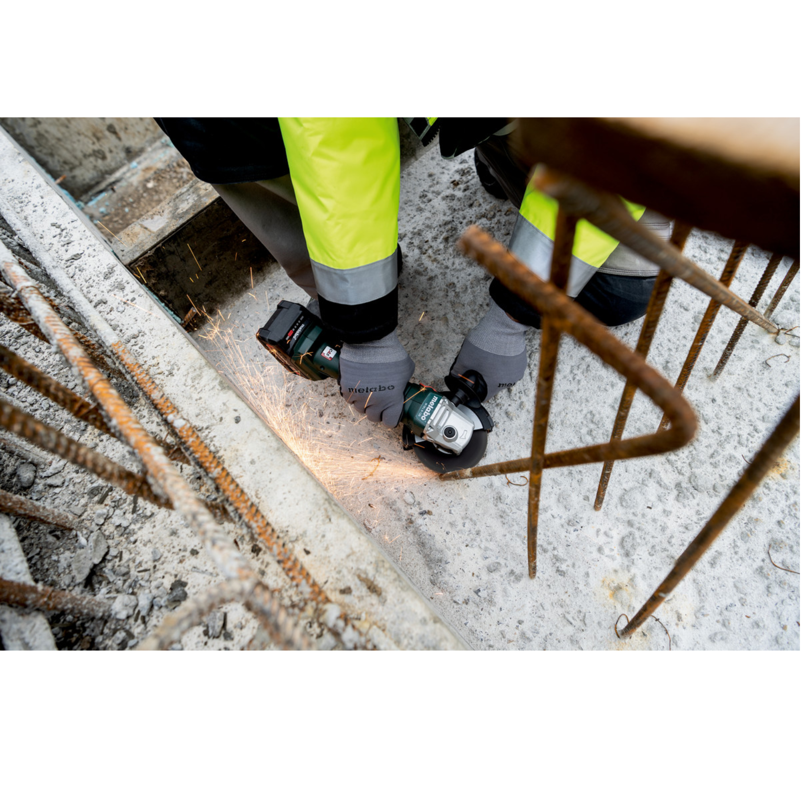 Robuster Akku-Winkelschleifer mit 125mm Scheibendurchmesser, elektronischer Sanftanlauf für ruckfreies Arbeiten und Akku Schutz, hohe Leistung bei geringem ( nur 1,6 kg) Gewicht.