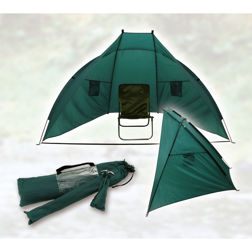 Kinderleicht aufzubauen mit 3 flexiblen Glasfaserstangen und zusätzlichem Stabilisationsband vorne. Lieferung mit Spannleine und Erdhaken im praktischen Nylon Tragebeutel. Material: 100% Polyester, Gewicht 1 kg, Maße 240x140x130 cm.