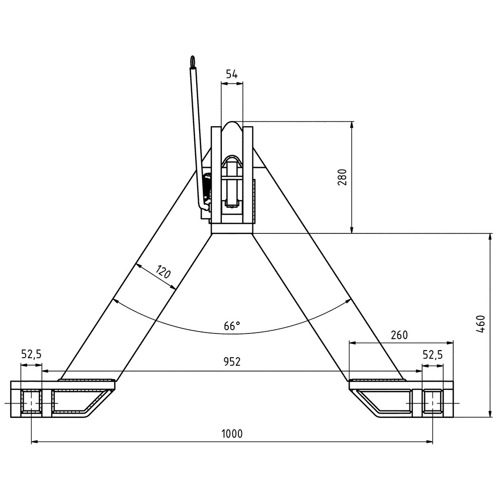 Zum Ankuppeln von Front- und Heckgeräten, Material Feinkornstahl QSTE380 (St52-3). Gefertigt aus Rahmenprofilen 60x60x5mm.