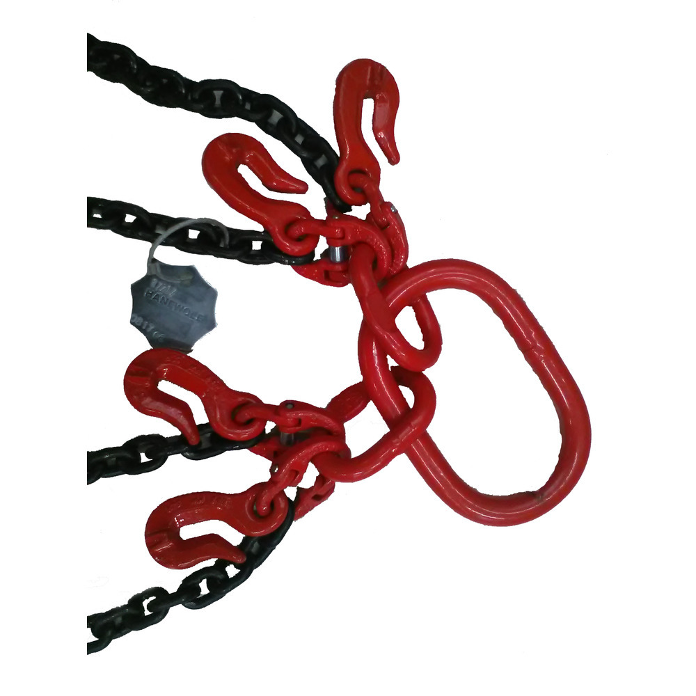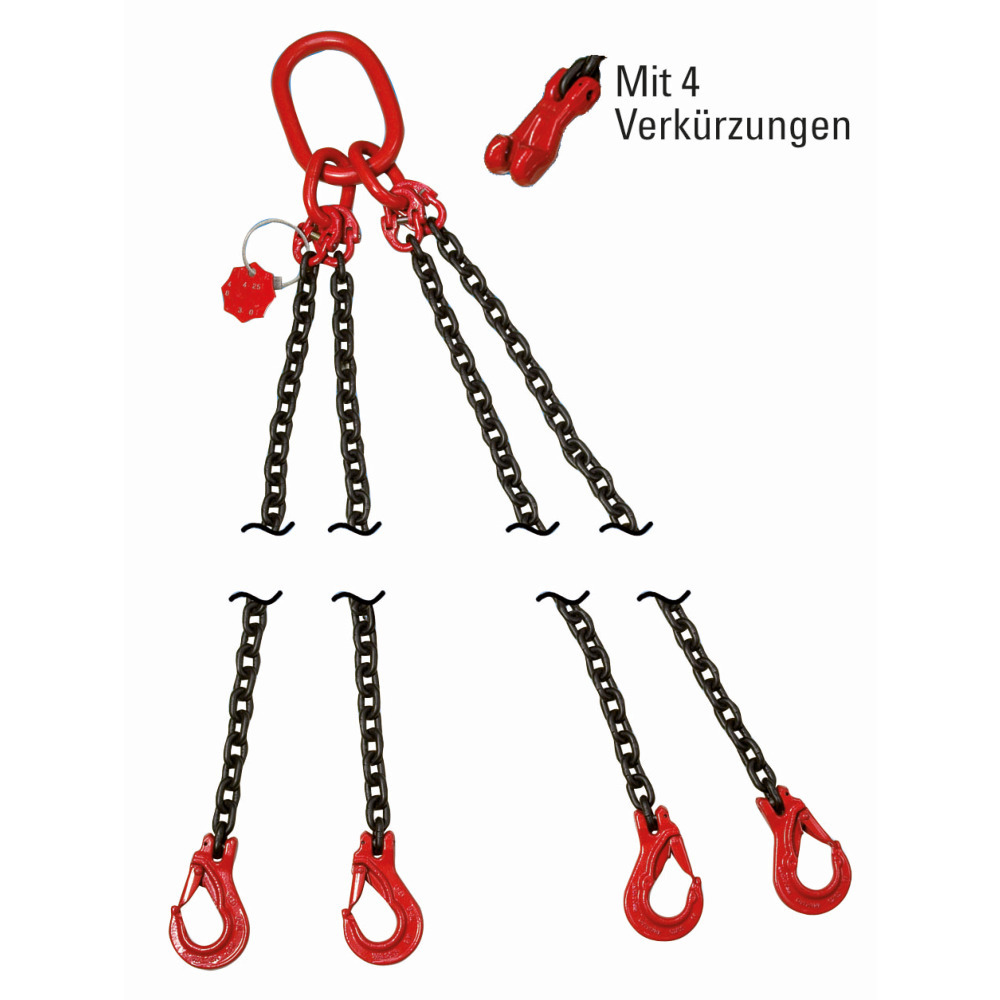 8 mm,3 Meter Nutzlänge mit 4 Verkürzungen, mit Ring und Lasthaken, mit Prüfplakette, Tragfähigkeit: bei 45° - 4250 kg, bei 60° - 3000 kg.