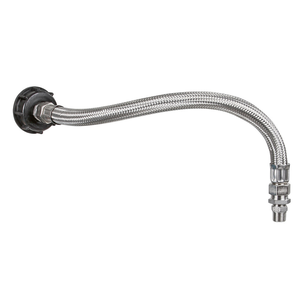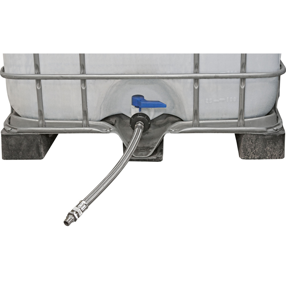 Zum Anschluss eines Tränkebeckens an einen IBC-Tank. inkl. flexibler Panzerschlauch 70 cm.