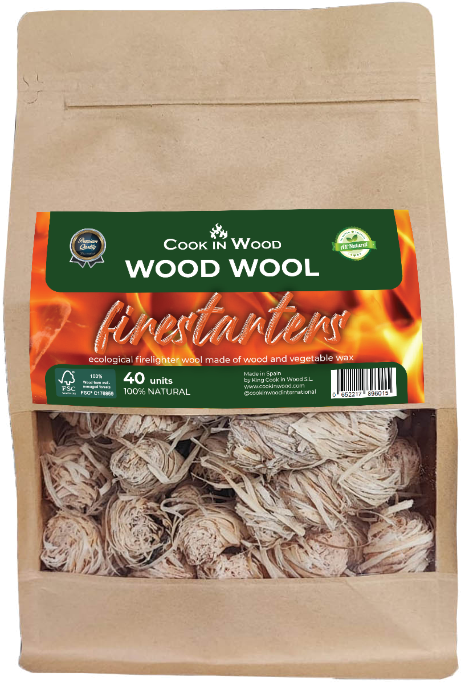 Der umweltfreundliche Anzünder aus Holzwolle von Cook in Wood ist eine ideale Lösung für alle, die Feuer natürlich und sauber entfachen möchten.