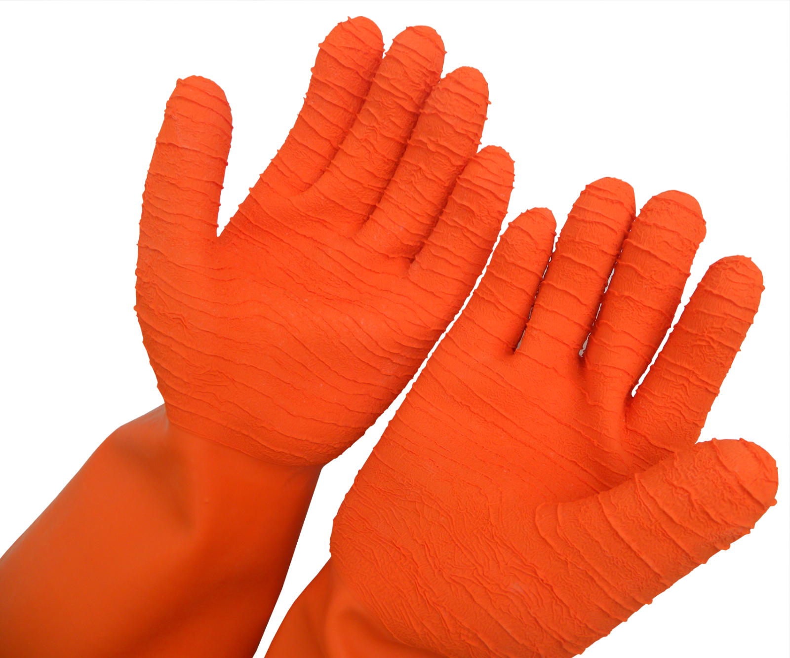 Haft-Gummihandschuhe für Fischzucht und AquakulturDiese strapazierfähigen Gummihandschuhe verfügen über eine speziell strukturierte Oberfläche, die selbst bei Nässe eine hervorragende Griffsicherheit bietet – ideal beim Arbeiten mit Fischen, Netzen oder auch bei glatten Oberflächen.Dank der extra langen Stulpen bleiben Ihre Jackenärmel zuverlässig trocken, selbst bei intensiven Kontakt mit Wasser.