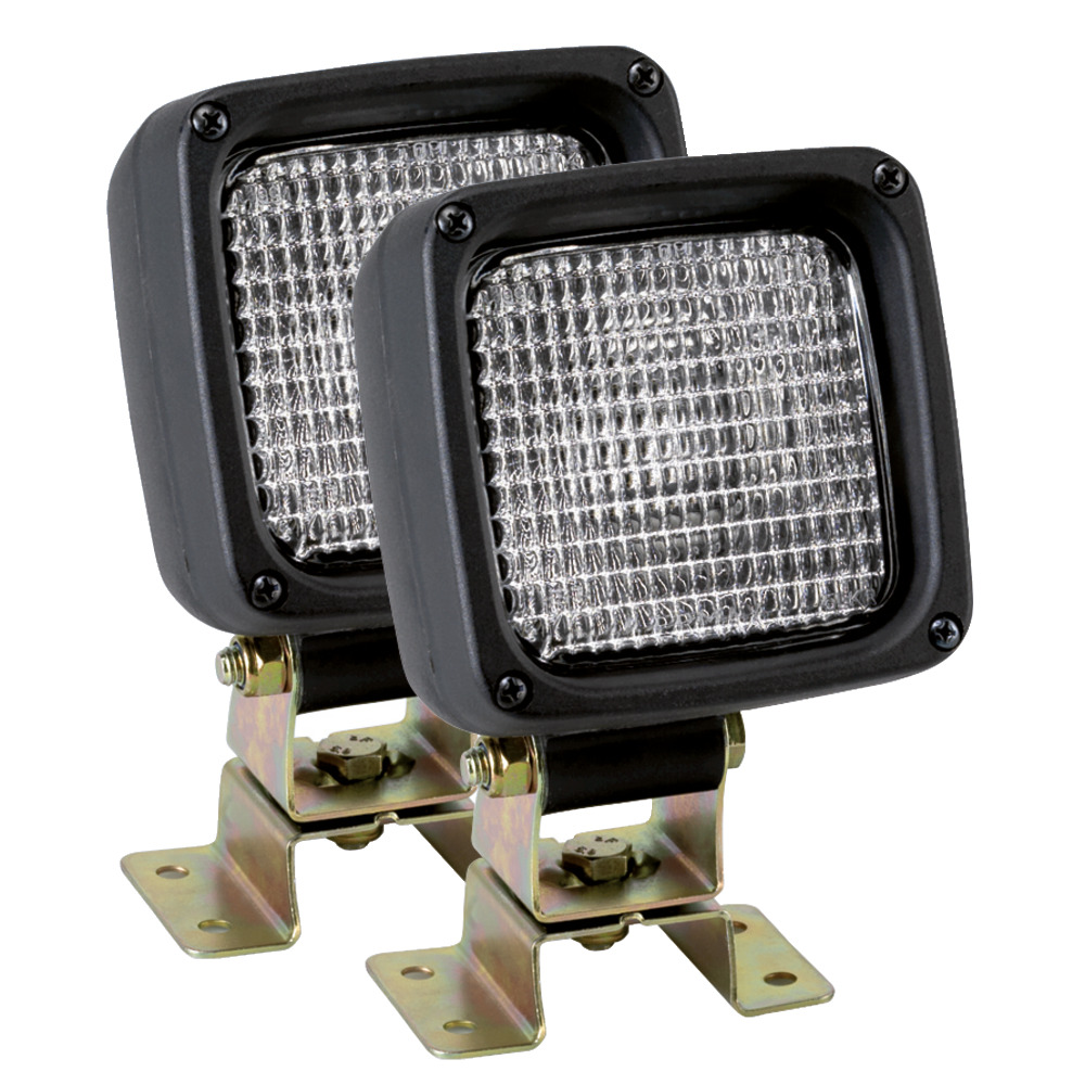 Aus schlagfestem Kunststoff, Glasstreuscheibe. Extrem starke Arbeitsfeldausleuchtung bei kleinster Bauweise. Horizontal schwenkbar um 360°. H3 12 V/24 V. BxHxT: 100x100x97 mm. (ohne Schalter, mit H3 Lampe, 12 V).
