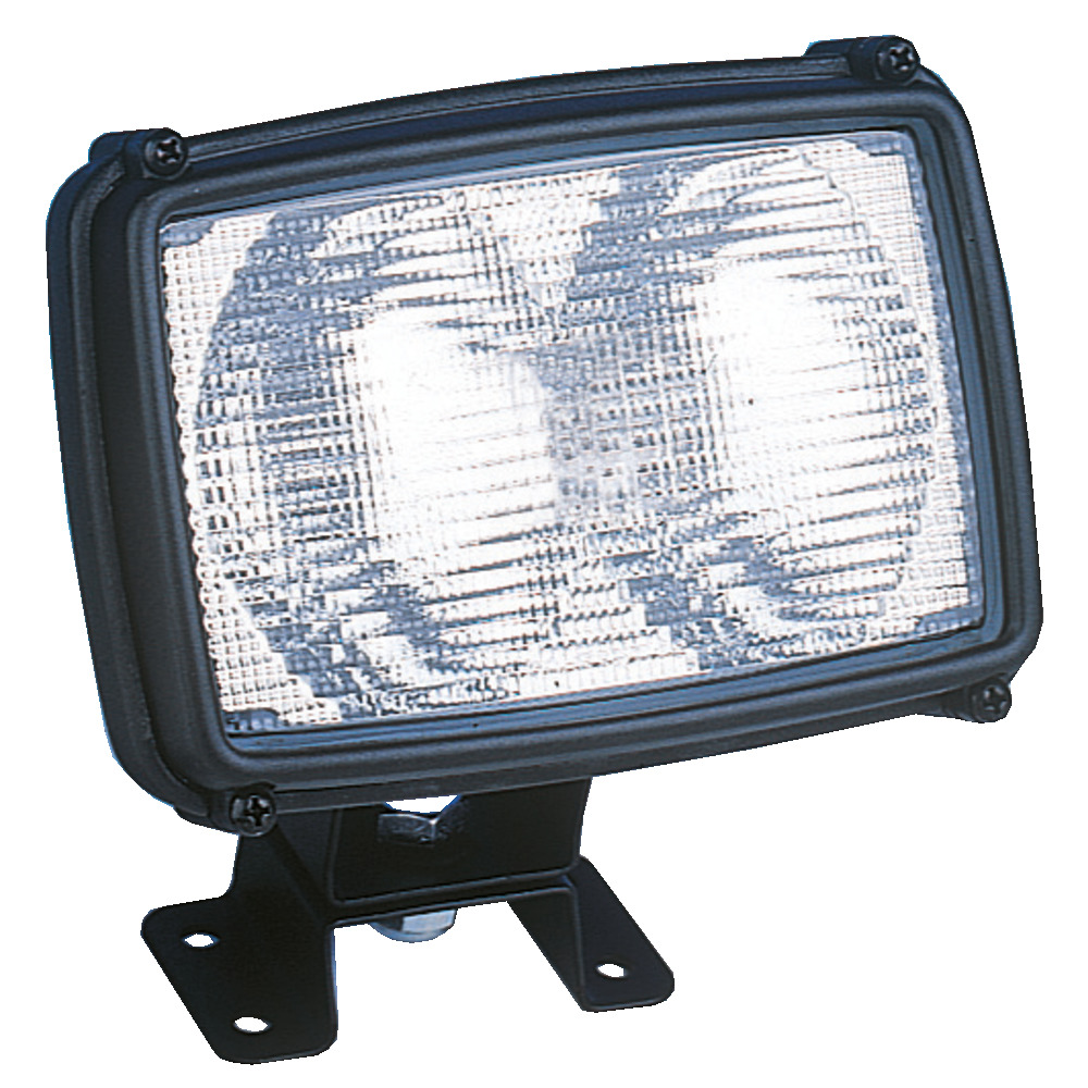 Robuster Arbeitsscheinwerfer mit Doppelreflektor, H3,2x12 V/55 W, schlagfestes Kunststoffgehäuse, Glasstreuscheibe, Befestigung mit Omega-Bügel, inklusive H3 Glühlampen.