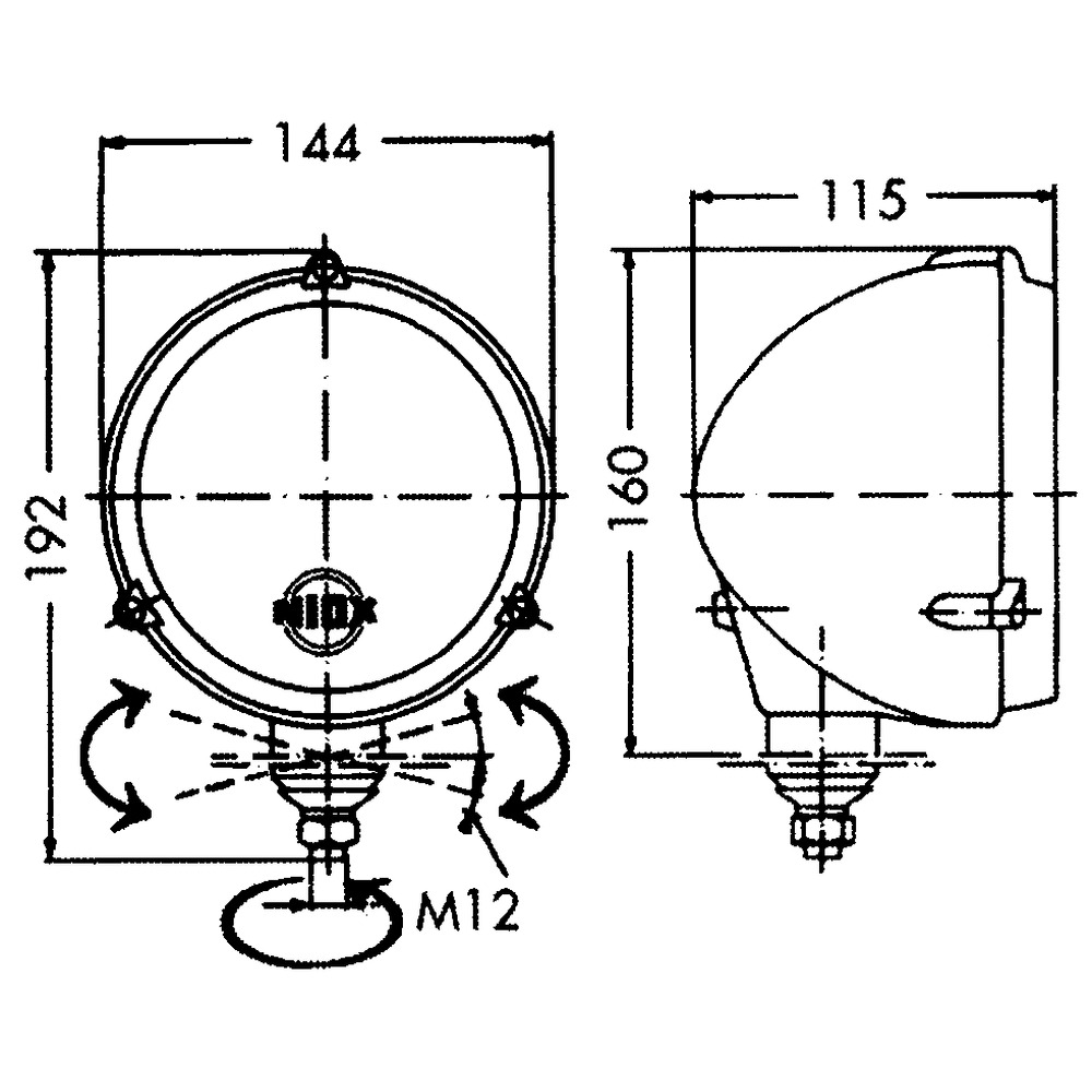 12V, 55W, sehr handliche robuste Bauarts stoßunempfindliches Gehäuse, 360° schwenkbar, hervorragende Lichtstärke, mit Schalter und Anbaukonsole, GlasstreuscheibeBxHxT: 144x192x115mm, (ohne Lampe)