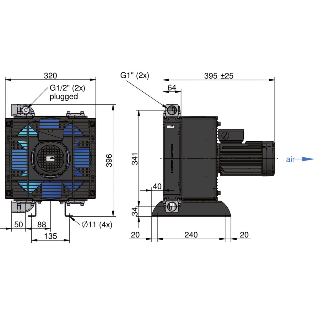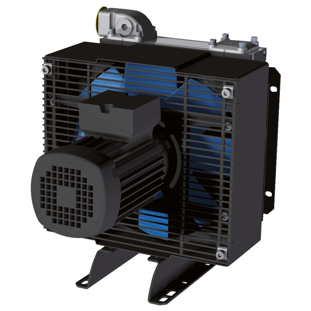 Aluminium-Ölluftkühler in Plattenbauweise. Maximaler Durchfluss 150 l/min, max. Betriebsdruck 26 bar, Schutzart IP55.Lieferung ohne Anschlüsse und Montagefuß.Anwendung: Heukräne, stationäre Kleinaggregate