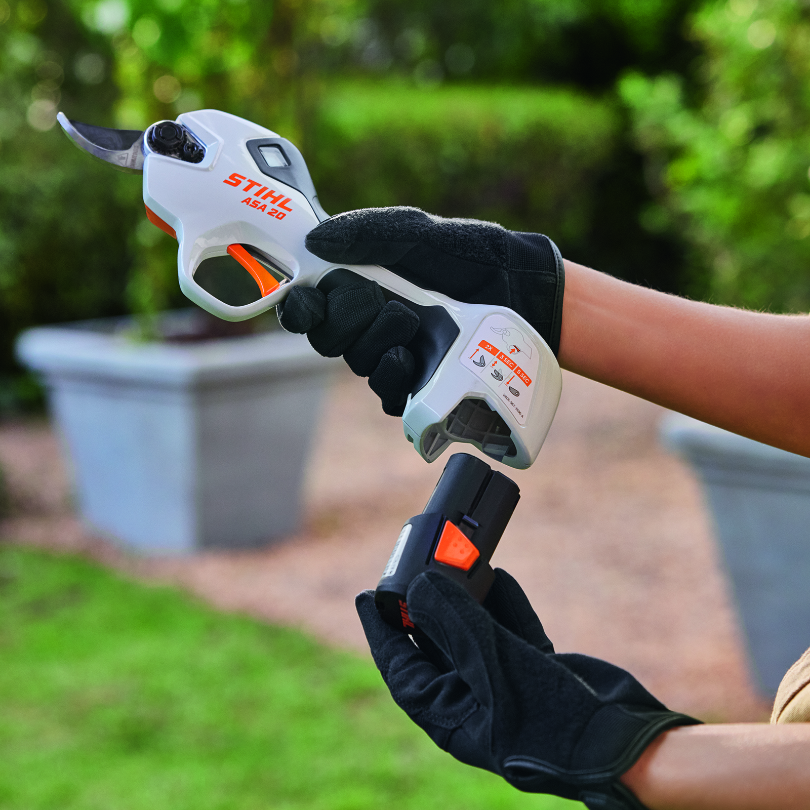 Die Stihl Akku-Astschere ASA 20 im Set mit Akku AS 2 und Standardladegerät AL 1- erleichtert Schneidarbeiten, wie die Pflege von Bäumen, Büschen, Sträuchern, Ziergewächsen und Weinreben- rund ums Haus und im Garten, genauso wie beispielsweise bei der Arbeit auf Streuobstwiesen oder im Weinberg.