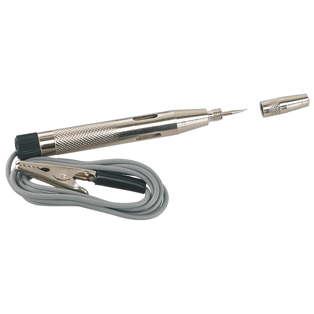 Handlicher Spannungsprüfer für den Kfz-Bereich. Ausgestattet mit einer robusten Krokodilklemme zur einfachen Erdung.