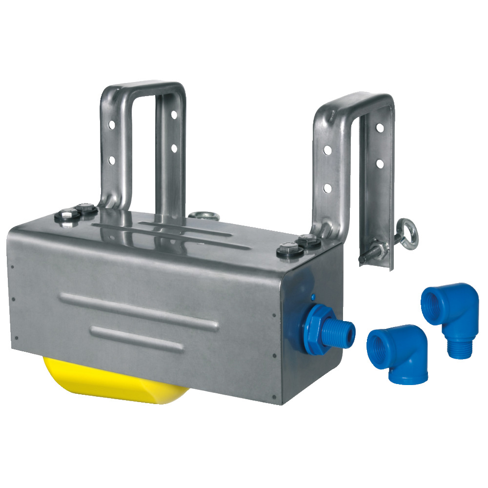 Aus Edelstahl. Sehr praktisch für die Montage an Wannen und Langtränken, auch bei schon bestehenden. Einhängbar bis zu einer Breite von ca. 7 cm. Mit Hochleistungsventil, bis 28 l/min Wasserabgabe, daher ideal für große Tiergruppen. Komplett mit Edelstahlhalterungen und zwei Wasseranschlüssen 1/2 Zoll. (LxBxH): 25 x 10 x 10 cm.