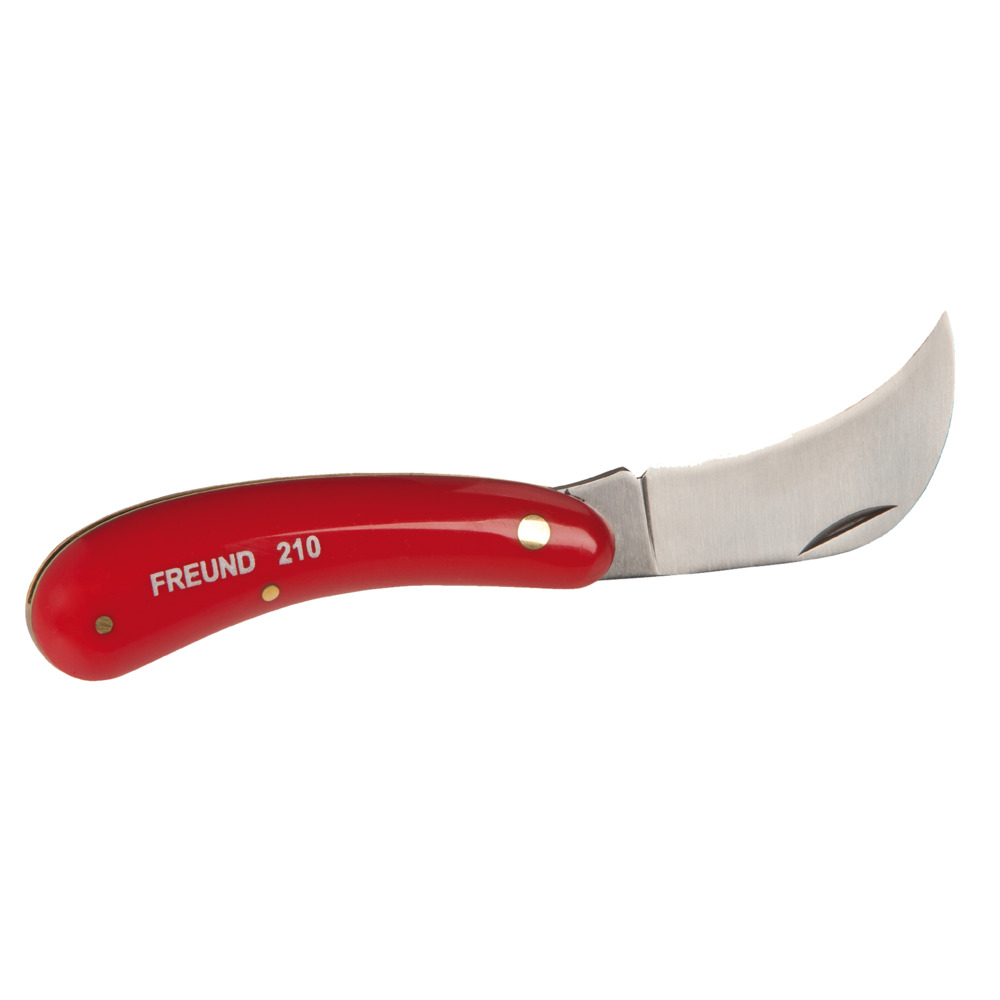 Profimesser mit feinpolierter Stahlklinge, robuste Ausführung. Rote Kunststoffschalen mit Messingeinlage, Länge total: 180 mm.