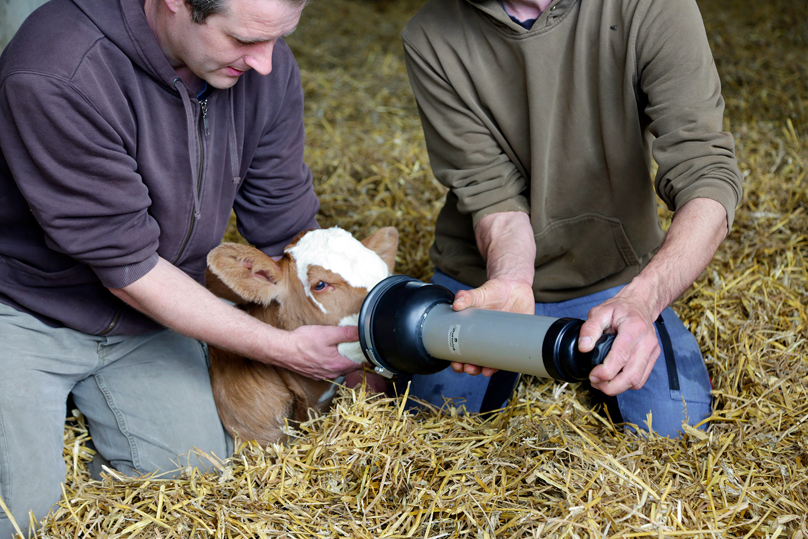 Nach Tierarzt Dr. Bron, für Kälber. Zum Abziehen von Schleim aus Nase und Mund. Zur Belebung des Kreislaufes bei schweren Kälbergeburten.