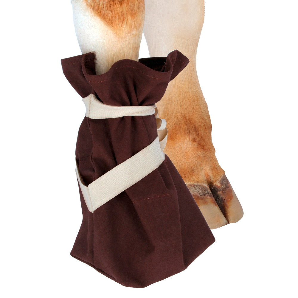 Huf- und Klauenschuh aus widerstandsfähigem und robustem Segeltuch. Inkl. zwei Bändern zum Fixieren, ideal für die Behandlung von Pferdehufen oder Rinderklauen mit Salben oder Lösungen. Innen mit einer starken Kunststoffplane versehen, damit die Behandlungslösung einwirken kann. Einheitsgröße (15 x 30 cm)