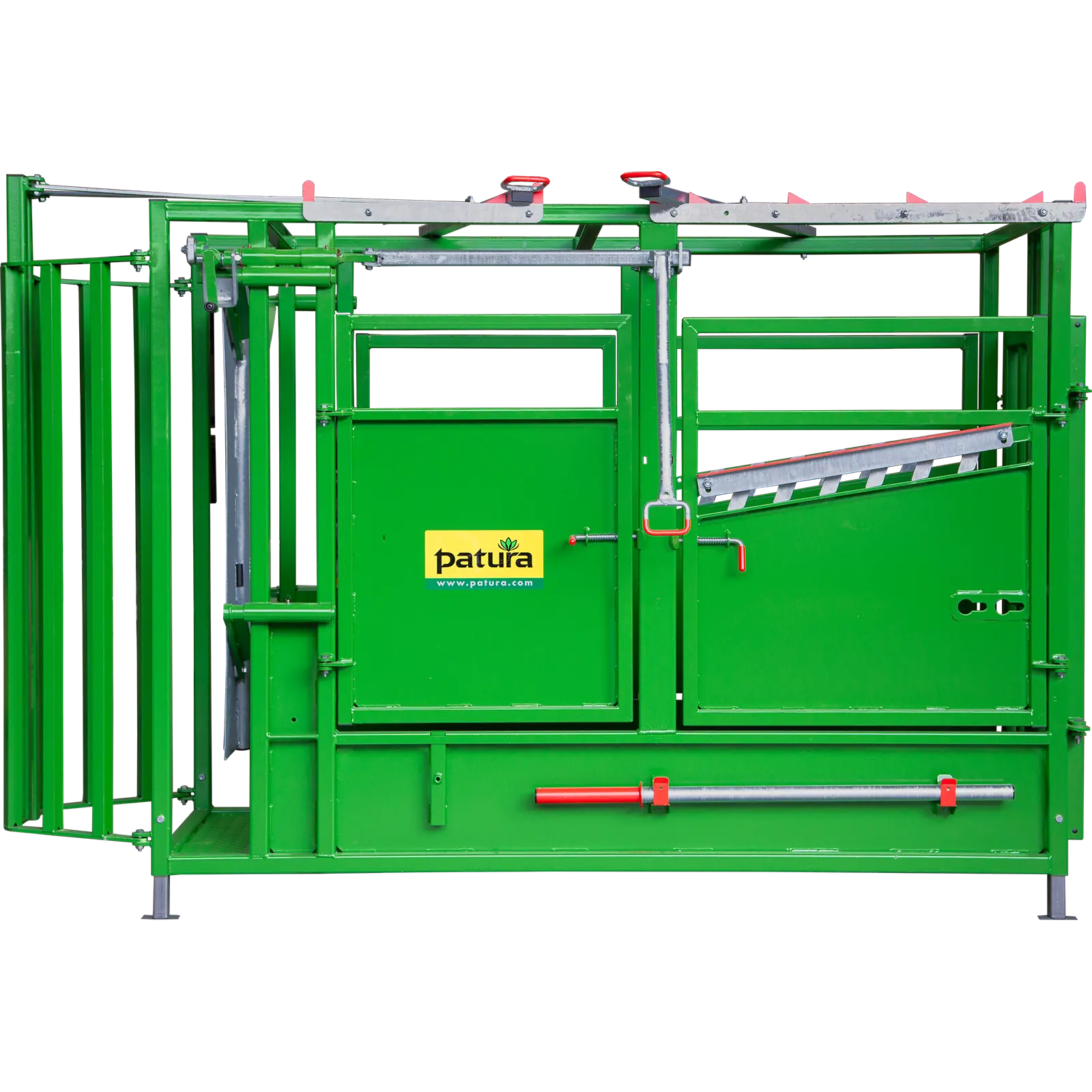 • Fangkorb Fangkorb und zentrale Einhand-Bedienung für sicheres Fangen Sichere Arretierung des Fangkorbs Auslass der Tiere durch weit öffnende FrontpartieHalsfangrahmen