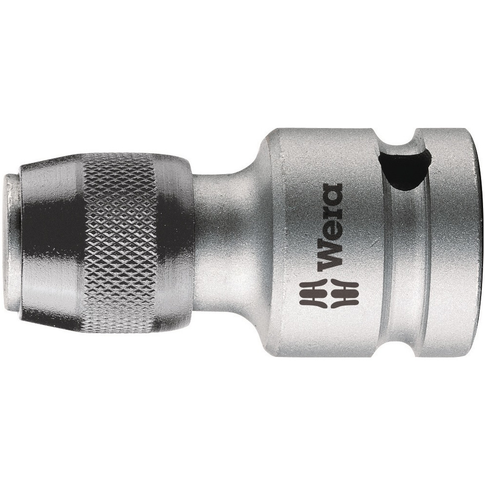 2,5 mm (1/2″)-Innenvierkant auf 6,3 mm (1/4″)-Innensechskant, zum maschinellen Antrieb (konv. Akkuschrauber) von Bits mit einer Knarre.