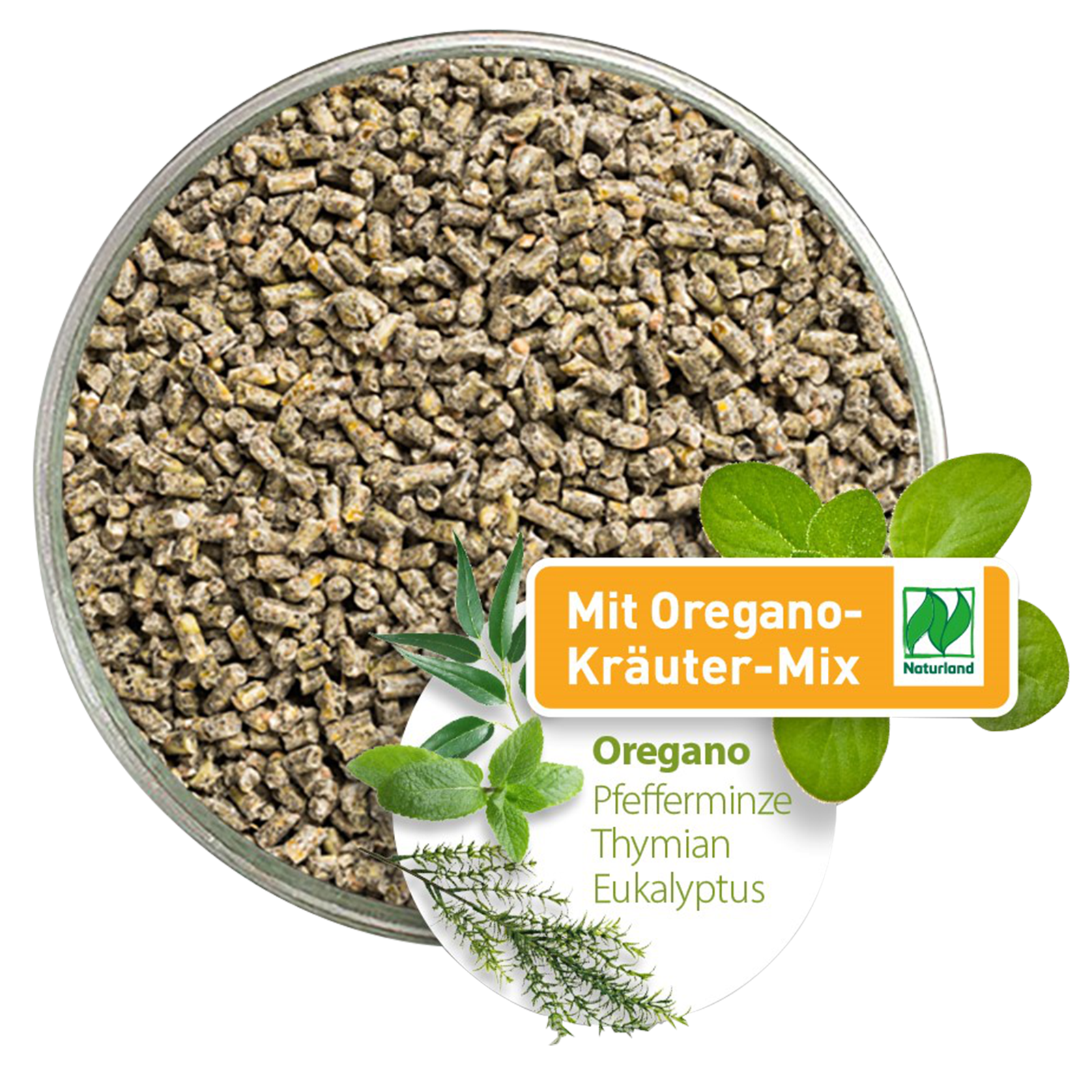 Produktinformationen "Bio Hühnerfutter Oregano-Kräuter Pellets 14 kg"