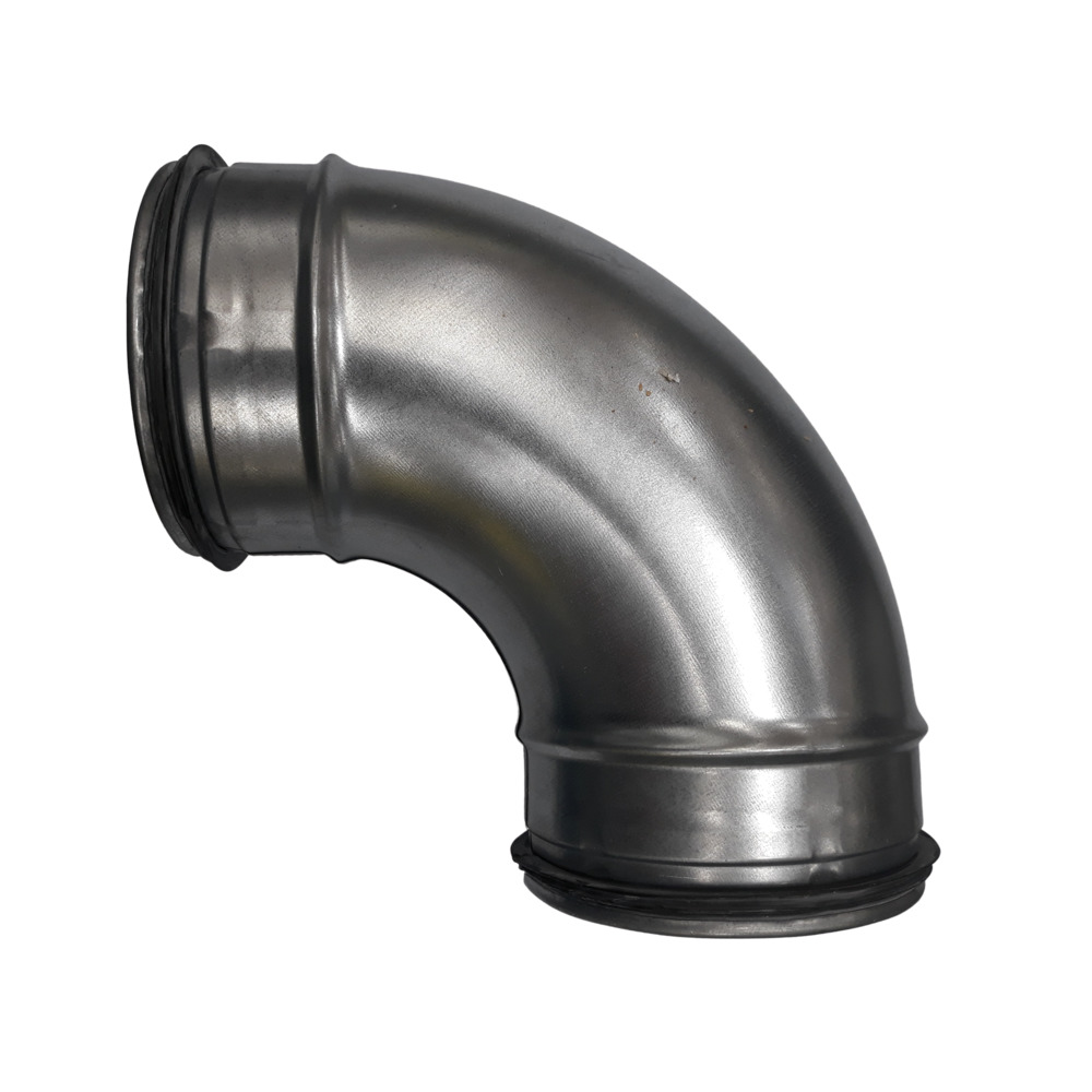 Aus gepressten Halbschalen, verzinktes Stahlblech, zum Aufstecken auf Rohrstücke. Zum Verbinden mit Formteilen muss eine Muffe zwischen Formteil und Bogen gesetzt werden. Gewicht: 0,4 kg.