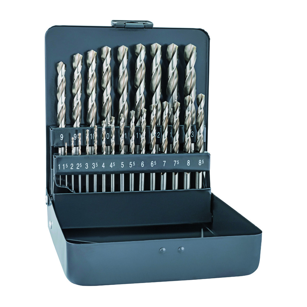 Profi HSS Spiralbohrer in geschliffener Ausführung für lange Standzeit und optimales Bohrergebnis. Metallkassette mit Bohrer 1,0 - 13,0 mm in 0,5 mm Steigung.
