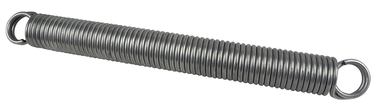 Beide Enden mit doppelt eingerollter Öse, Aussen-Ø 60 mm, Stärke 8 mm, Gesamtlänge 610 mm, Zugkraft 196 kg, Streckung 340 mm.