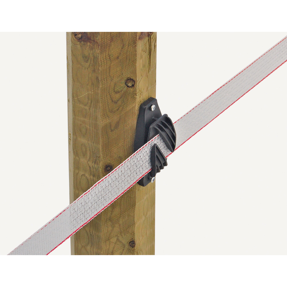 Stabile und robuste Ausführung, zum Anschrauben oder Nageln. Band durchlaufend - damit ist ein Nachspannen des Weidezaunbandes über eine längere Strecke problemlos möglich. Für Bänder bis 40 mm. 10 Stück/Packung