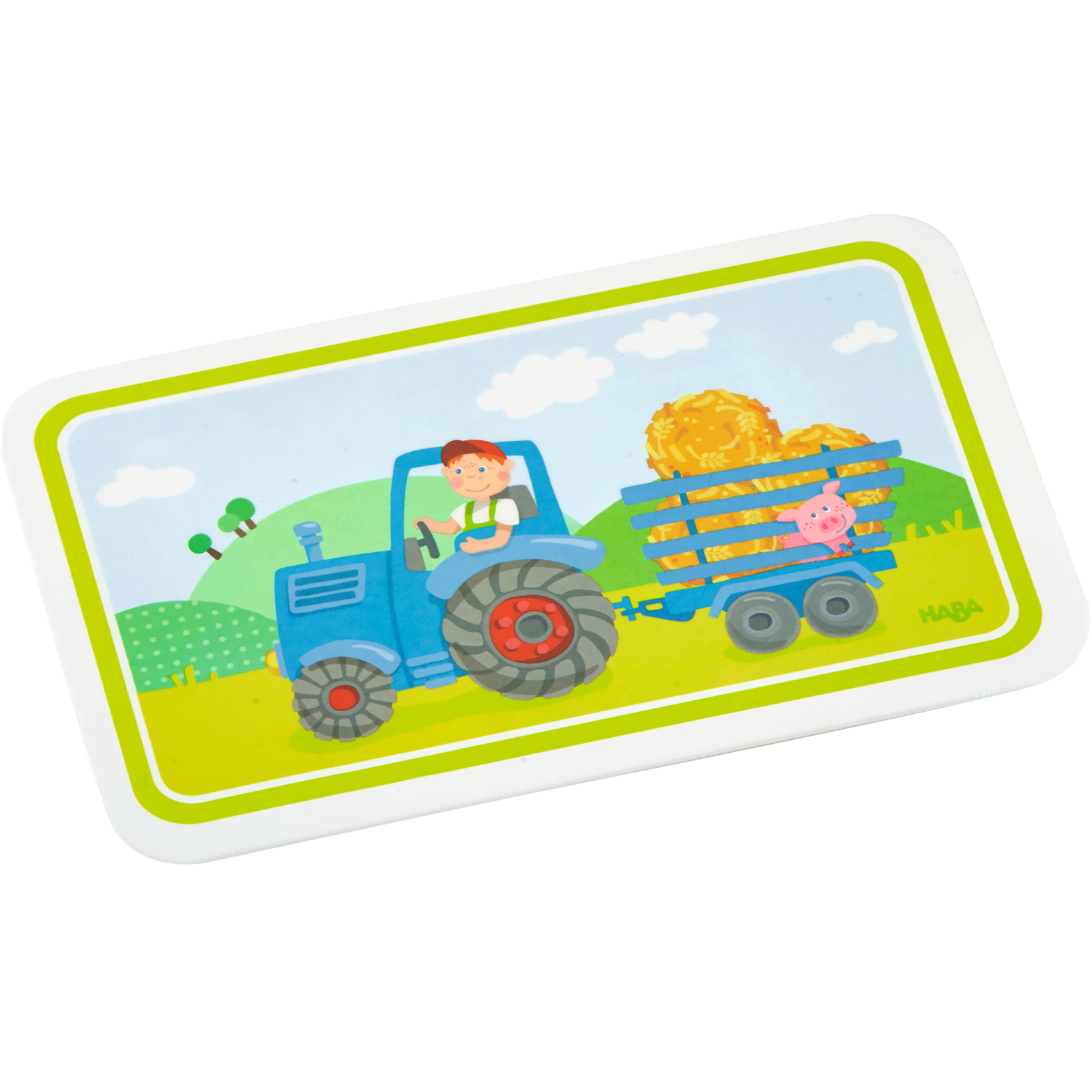 Ob beim Frühstück oder Abendbrot – das Traktor Brettchen bringt im Nu Freude auf den Tisch und macht Kindern noch mehr Appetit auf abwechslungsreiche Mahlzeiten und gesunde Snacks. Dank praktischer Gumminoppen an der Unterseite rutscht das Brettchen auch nicht auf dem Tisch herum. Es besteht aus robustem Melamin und darf deshalb in die Spülmaschine.Auf einen Blick• aus der Traktor-Geschirr-Serie von HABA• aus robustem Melamin & spülmaschinengeeignet• ideal für Frühstück & Snacks• sicherer Stand dank Gumminoppen