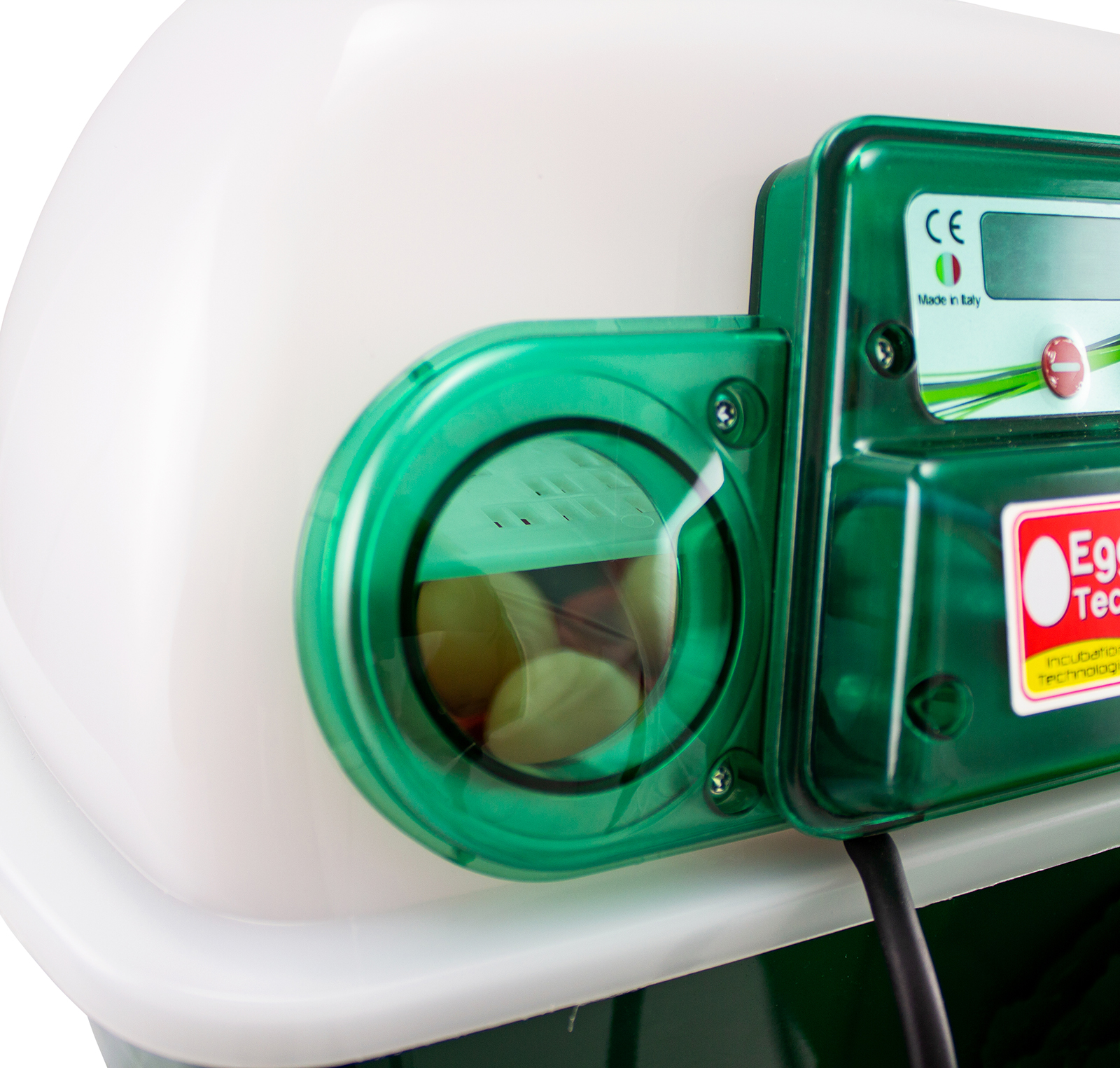 • Bullauge zur Inspektion: Der Deckel ist mit zwei Inspektionsöffnungen ausgestattet, die es dem Benutzer ermöglichen, alle Phasen der Brutzeit von außen zu verfolgen
