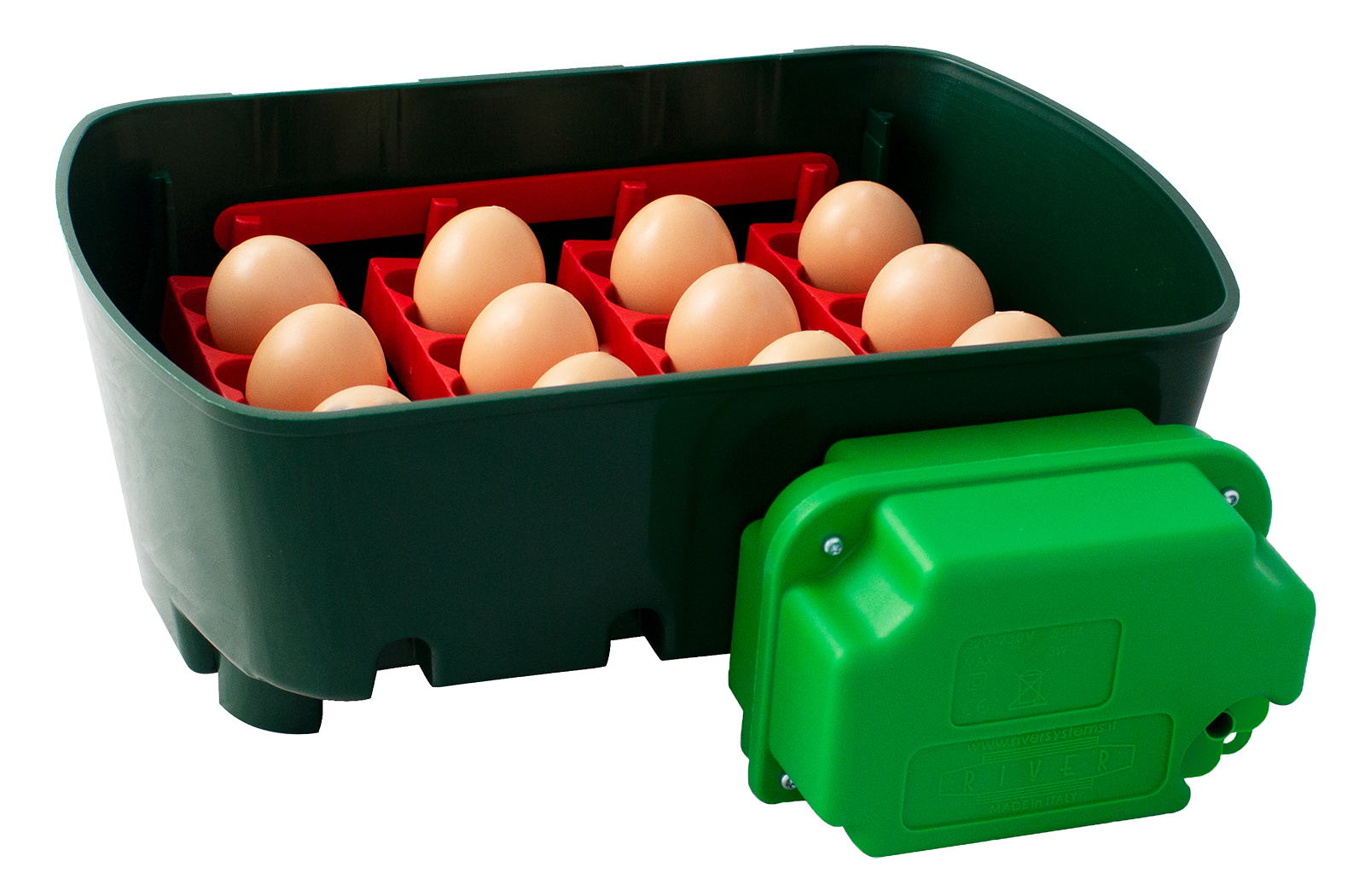• KippbaresTablett: Die zu bebrütenden Eier werden in eine Schale mit einem kippbaren System gelegt. Die Oszillation der Schale wird durch den OVOMATIC-Eiwendermotor geregelt