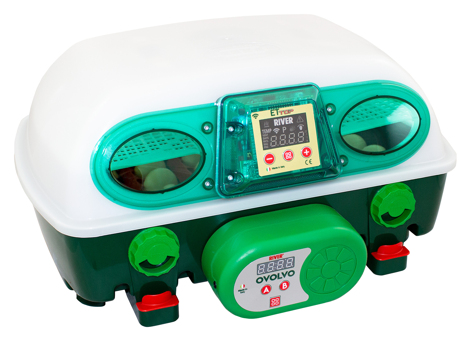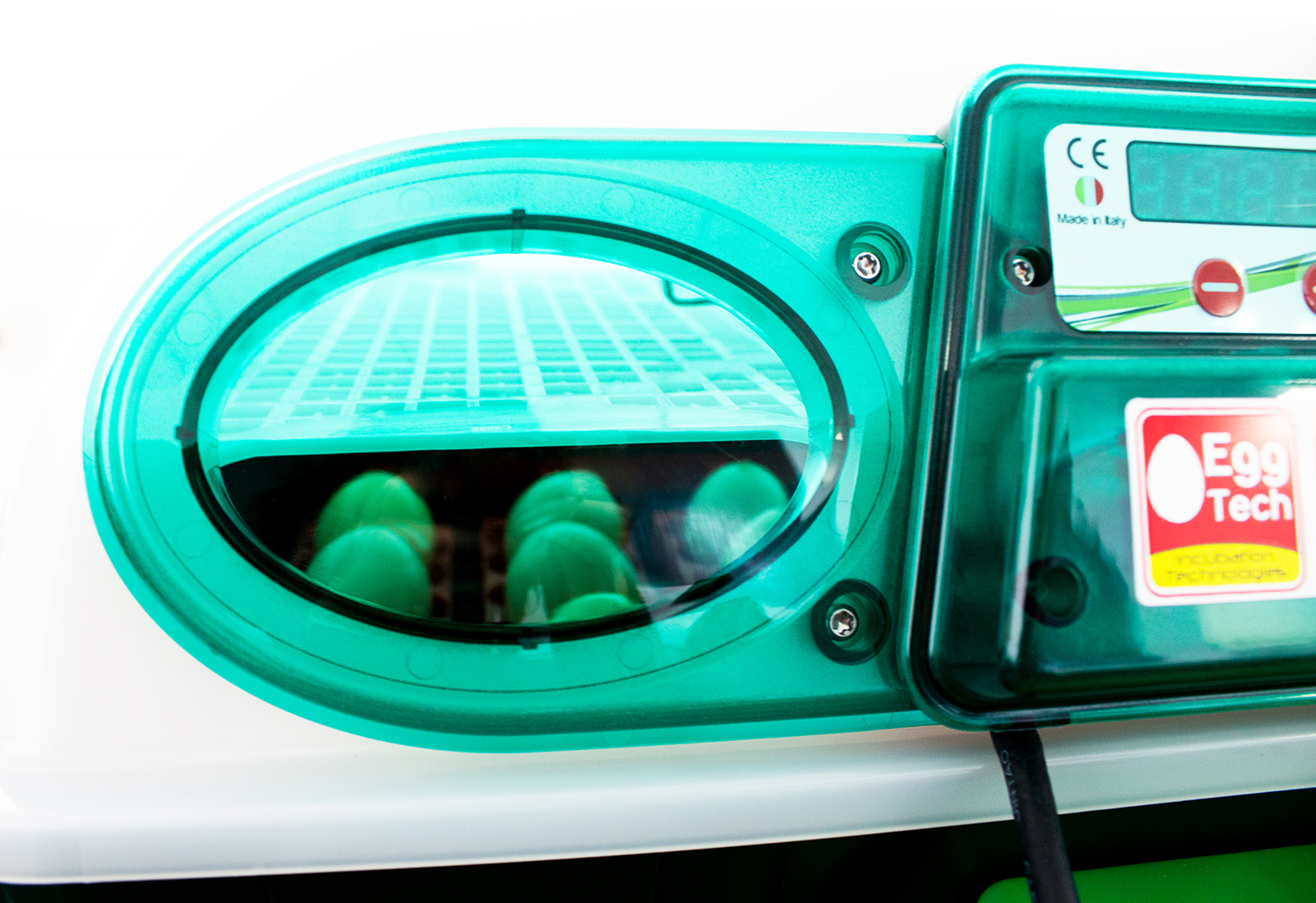 • Bullauge zur Inspektion: Der Deckel ist mit zwei Inspektionsöffnungen ausgestattet, die es dem Benutzer ermöglichen, alle Phasen der Brutzeit von außen zu verfolgen. Eine Beleuchtung ist mittels Steuerung oder App möglich