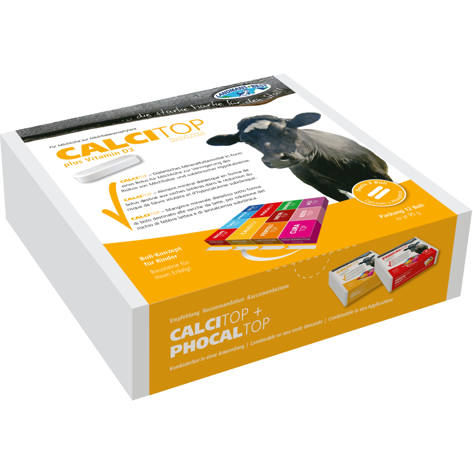 Der effektive Calcium-Bolus mit einem hohem Calciumgehalt und Phosphor zur Verringerung der Gefahr von Milchfieber. Der Bolus enthält einen schnelllöslichen Calciumzusatz und wird ab den ersten Anzeichen vor dem Kalben verfüttert.