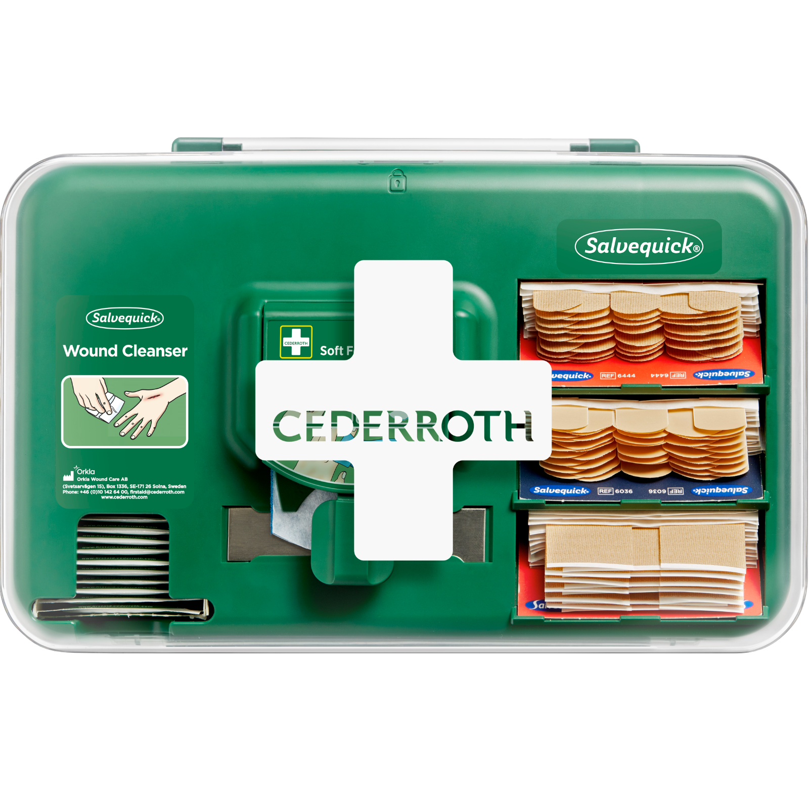 Einfach, leicht zugänglich und gut organisiert. Klein und einfach zu platzieren. Eine Ergänzung zu anderen Erste-Hilfe-Produkten.So gut wie alles, was zur Versorgung kleinerer Wunden erforderlich ist, in einem praktischen Spender.Enthält Soft Foam Bandage Blue - ein elastischer, selbsthaftender Verband, der sich im Wasser nicht löst.Die Produkte sind arretiert. Hierdurch wird Schwund vermieden.Pflasternachfüllpackungen lassen sich leicht an die besonderen Bedürfnisse des Arbeitsplatzes anpassen.Abmessung 30 x 19 x 14 cm (BxHxT)Bestehend aus:1 Salvequick Wundreiniger, 40 St.1 Cederroth Soft Foam Bandage Blue, 4,5 m1 Salvequick Textilpflaster klein 40 St.1 Salvequick Wasserabweisende Pflaster 45 St.1 Salvequick Textilpflaster groß 21 St.1 Spezialschlüssel