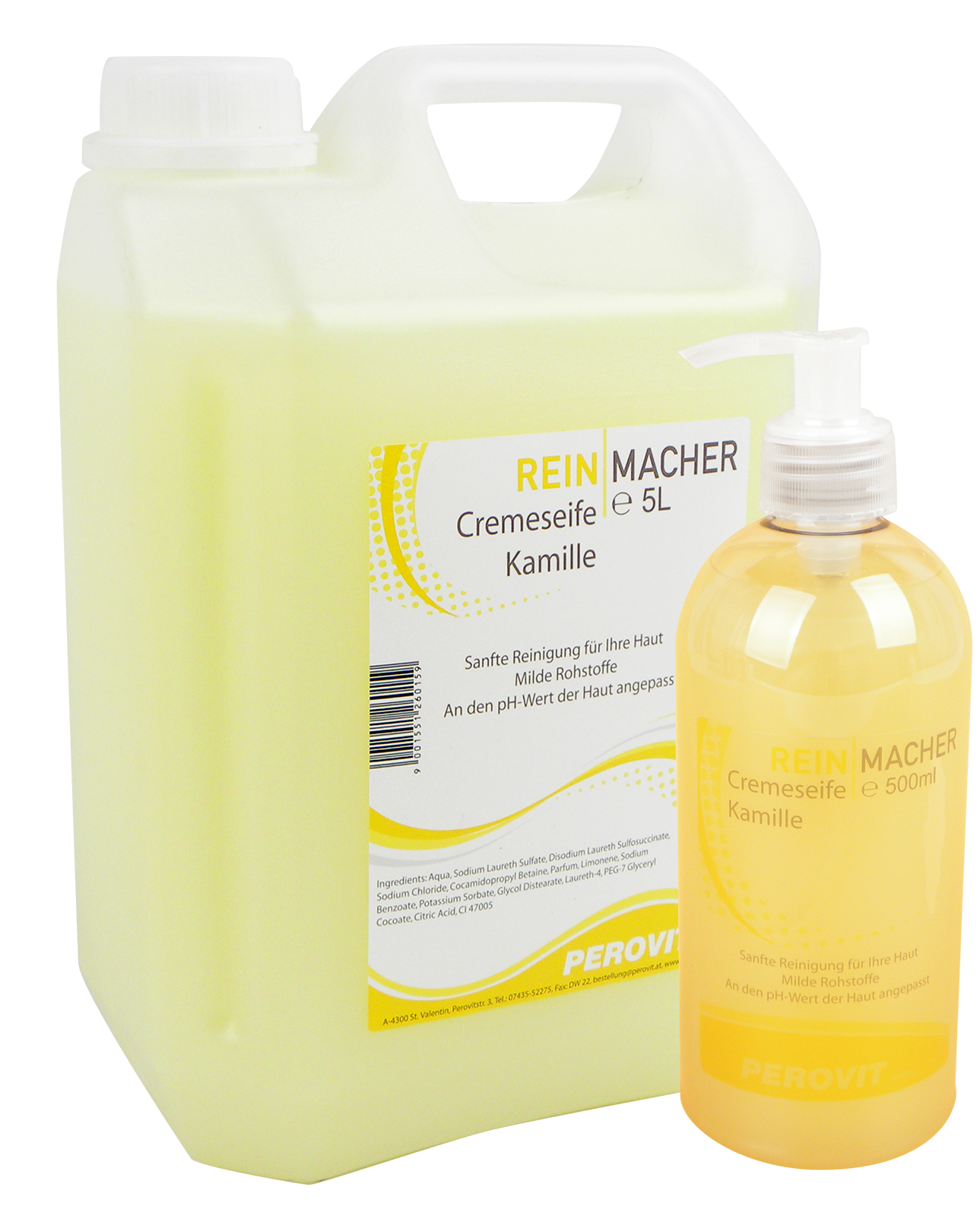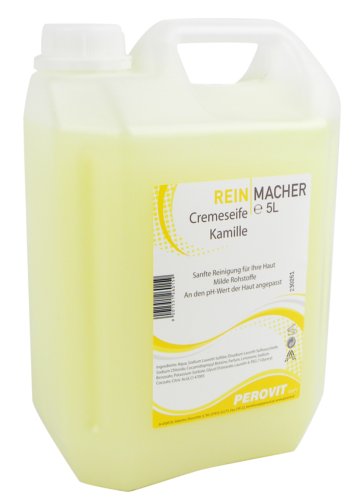 Diese Reinmacher Cremeseife Kamille ist eine milde und hautfreundliche Seife, die für die tägliche Reinigung von sensibler und anspruchsvoller Haut geeignet ist. Sie enthält hautfreundliche Inhaltsstoffe, die die Haut sanft reinigen und pflegen. Die Seife ist dezent und riecht nach Granatapfel, der pH-Wert von 5,5 unterstützt den natürlichen Säureschutzmantel der Haut und hilft, die Haut vor dem Austrocknen zu schützen.