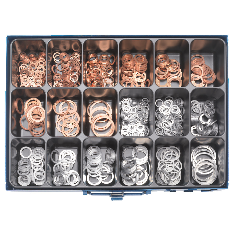 Umfangreiches Sortiment der gängigsten Kupfer- und Aludichtungen von 8 x 12 - 32 x 38 mm.Inhalt: 8 x 12 Kupfer und Alu10 x 14 Kupfer und Alu12 x 18 Kupfer und Alu14 x 20 Kupfer und Alu16 x 22 Kupfer und Alu18 x 24 Kupfer und Alu20 x 26 Kupfer und Alu22 x 27 Kupfer und Alu30 x 36 Kupfer und Alu32 x 38 Alu