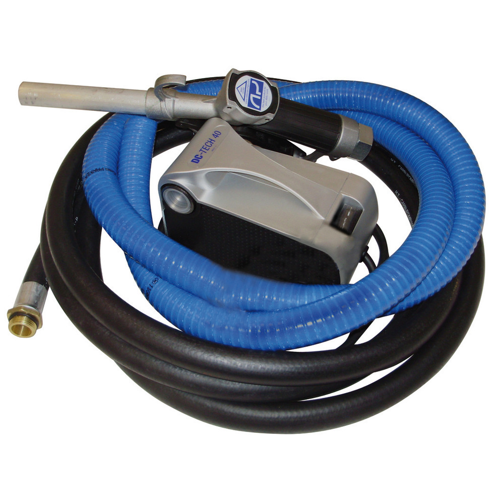 Kompakte 12 Volt Dieselpumpe mit max. 40 L/min. Leistung. Gewicht nur 3,6 kg, selbstsaugend (nach Erstfüllung) bis 2 Meter, Höchstdruck 1,3 bar. Komplett mit 1,8 Meter Anschlusskabel 2 Meter Saugschlauch, 2 Meter Auslaufschlauch sämtliche Armaturen in 3/4 Zoll, Ansaugfilter sowie einer manuellen Zapfpistole.