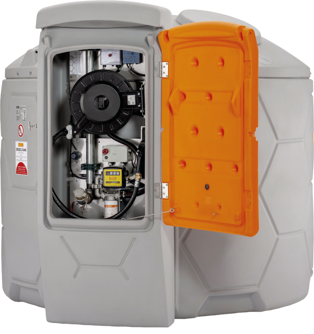 Der Tank entspricht der allgemeinen bauaufsichtlicher Zulassung Z-40.21-565. Für den Outdoorbereich gedachter und zugelassener Tank mit Befüllanschluss mit TW-Kupplung und Grenzwertgeber, Entlüftungsklappe, Revisionsöffnung mit Klappdeckel, Entnahmeleitung, Be-und Entlüftung sowie natürlich einer Füllstandsanzeige. Der Tankvorgang erfolgt über eine für Diesel, Biodiesel und Heizöl geeignete CENTRI-Tauchpumpe mit 800Watt/230 Volt und einer Förderleistung von 80 L/min. Für schnelles Betanken bei großen Tankvolumen und effizientes Arbeiten in stressigen Zeiten. Die Tankstelle verfügt über einen abschließbaren Armaturenschrank mit klappbarer Tür die gleichzeitig als Wetterschutz fungiert. Die Premium ist komplett Ausgestattet mit Tank, Pumpe, Schlauchaufroller mit 8m 1 Zoll Dieselschlauch, automatischer Zapfpistole mit 80L/min Durchfluss, Zählwerk sowie Filter mit Wasserabscheider.
