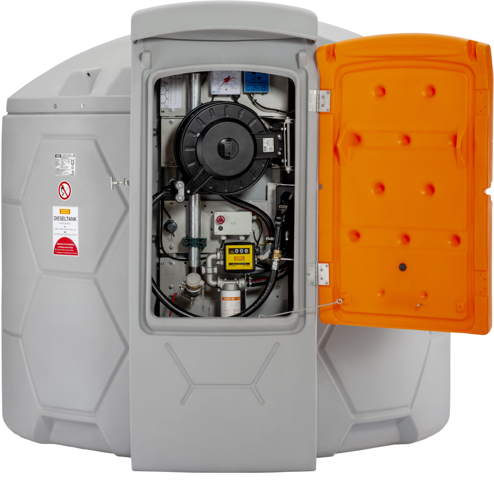 Premium Tankstelle mit CUBE-Dieseltank 7500L mit Integrierter Auffangwanne.Der Tank entspricht der allgemeinen bauaufsichtlicher Zulassung Z-40.21-565.Für den Outdoorbereich gedachter und zugelassener Tank mit Befüllanschluss mit TW-Kupplung und Grenzwertgeber, Entlüftungsklappe, Revisionsöffnung mit Klappdeckel, Entnahmeleitung, Be-und Entlüftung sowie natürlich einer Füllstandsanzeige.Der Tankvorgang erfolgt über eine für Diesel, Biodiesel und Heizöl geeignete CENTRI-Tauchpumpe mit 800Watt/230 Volt und einer Förderleistung von 80 L/min.Für schnelles Betanken bei großen Tankvolumen und effizientes Arbeiten in stressigen Zeiten.Die Tankstelle verfügt über einen abschließbaren Armaturenschrank mit klappbarer Tür die gleichzeitig als Wetterschutz fungiert.Die Premium ist komplett Ausgestattet mit Tank, Pumpe, Schlauchaufroller mit 8m 1 Zoll Dieselschlauch, automatischer Zapfpistole mit 80L/min Durchfluss, Zählwerk sowie Filter mit Wasserabscheider.Technische Daten:Abmessung: 291 x 244 x 225 cm, Inhaltsvolumen: 7.500 L, Eigengewicht: 430 kg, Pumpe: 800 Watt / 230 Volt, Förderleitung max.85 L/min.Lieferung komplett montiert.Ihre Vorteile auf eine Blick: günstiger Treibstoffeinkauf durch großes Volumen, rasches Tank durch hohe Pumpen-Förderleistungfür Outdoor geeignet/zugelassen.Qualität Made in Germany