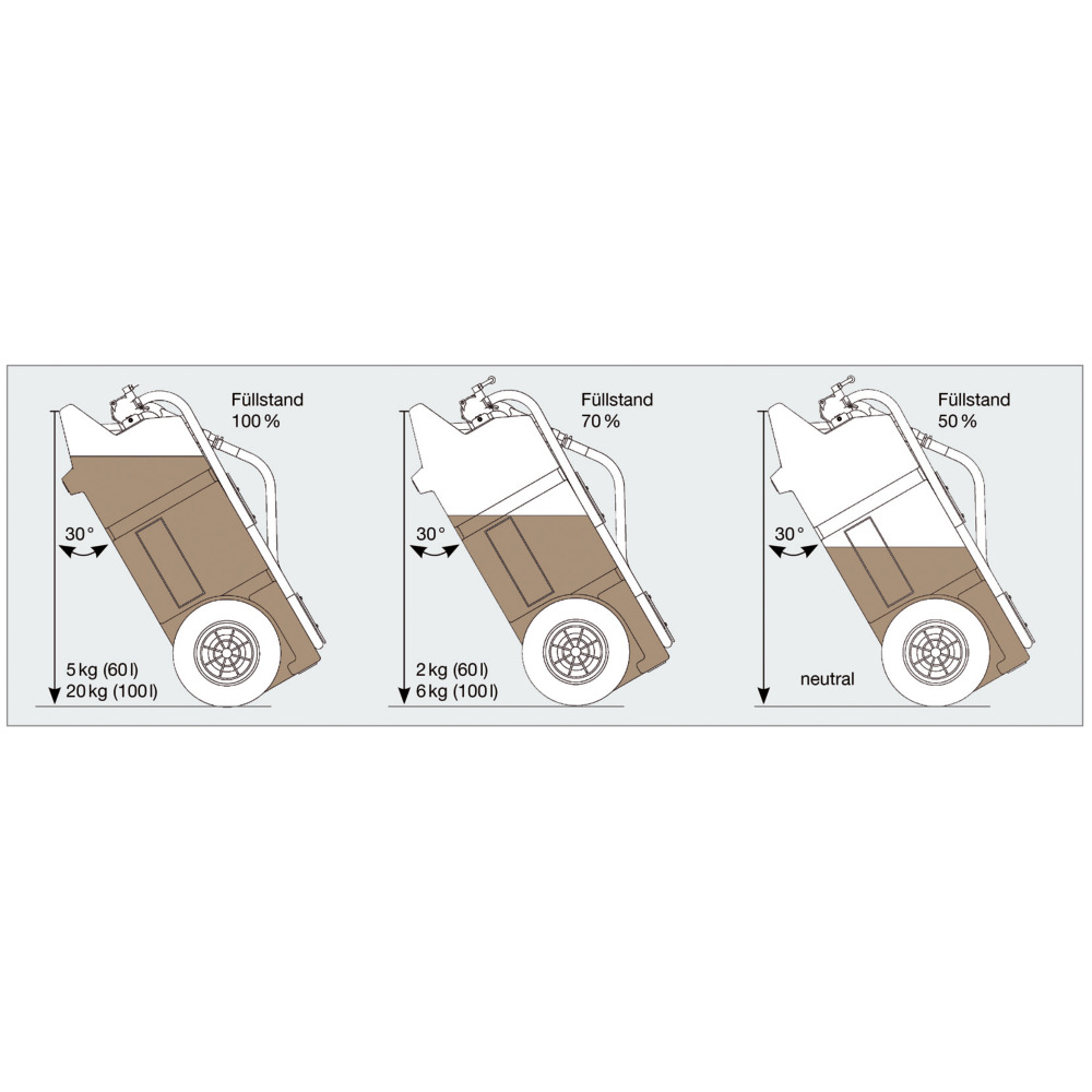 - Trolley 100 L: Räder Ø 300 mm, luftbereift, geländegängig