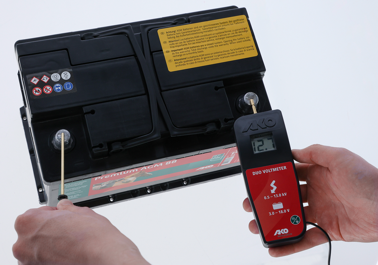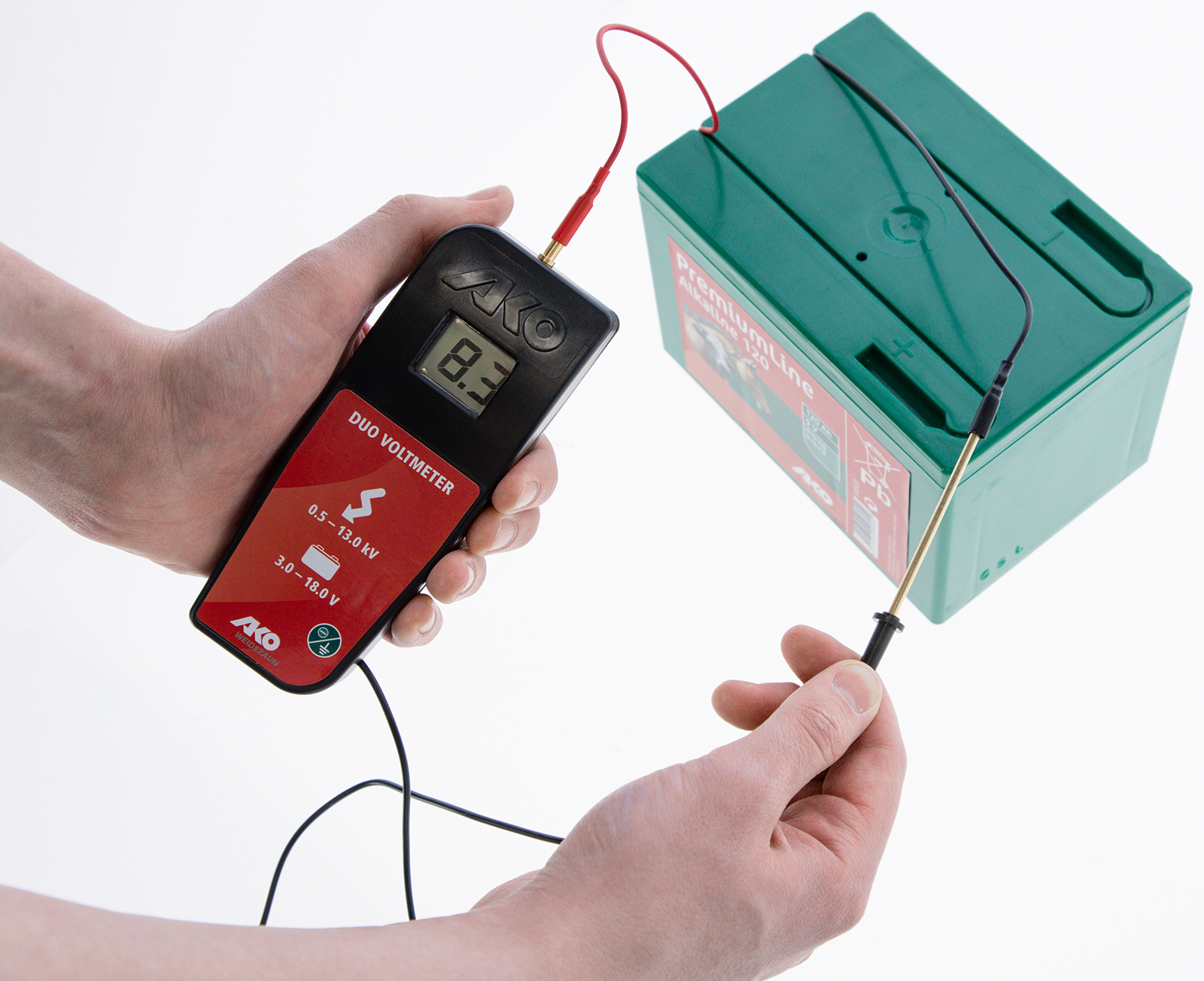 Herkömmliche Zaunprüfer messen nur die Zaun(hoch)spannung aber sie können die niedrigeren Batteriespannungen nicht ablesen. Multimeter können Batterien prüfen, werden aber beim Testen der Hochspannungen von Elektrozäunen beschädigt.