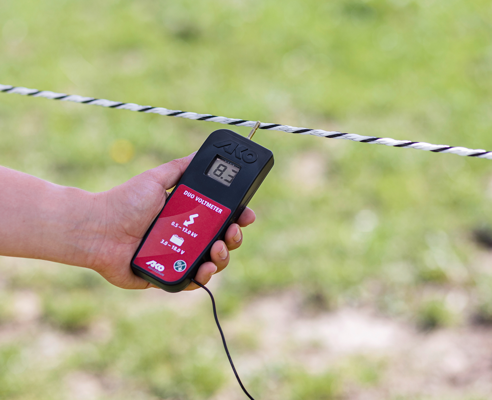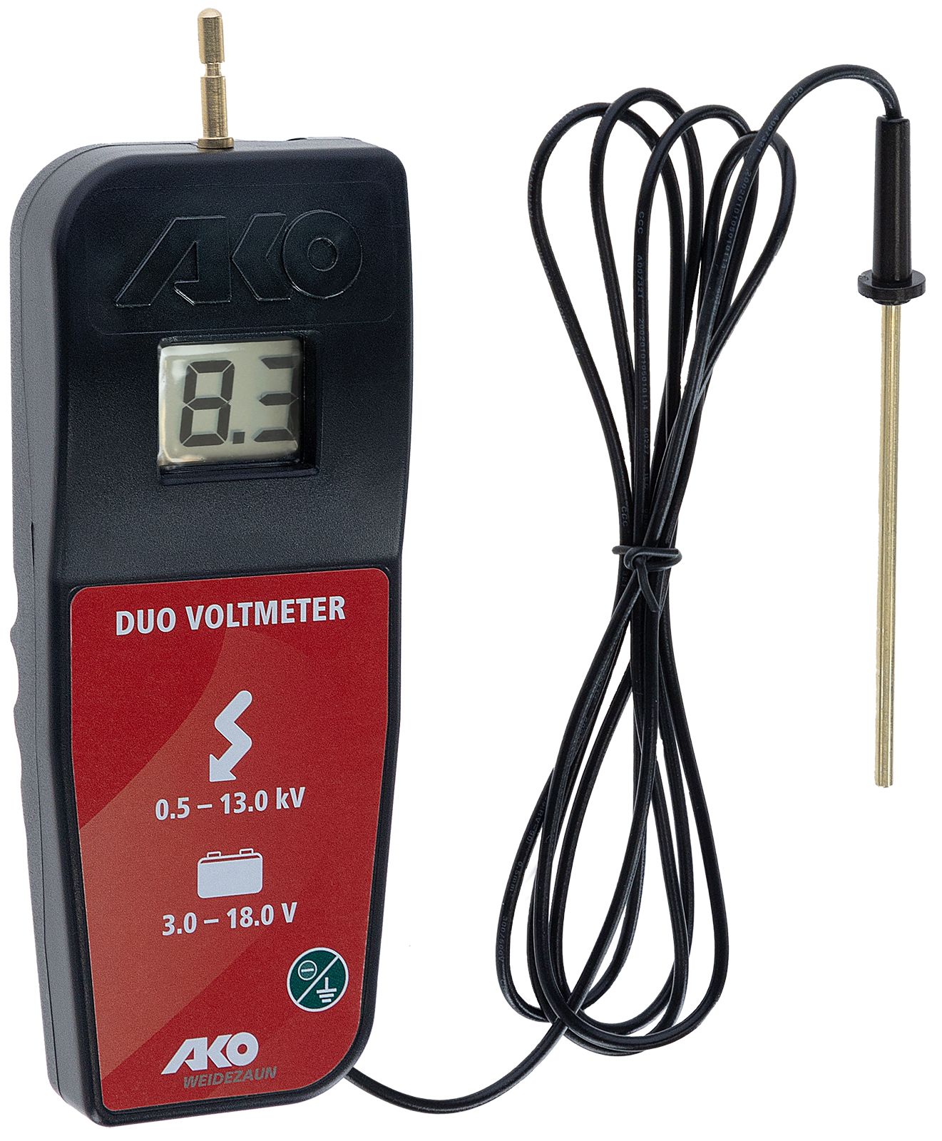 Digitaler Voltmeter zur Messung der Spannung von Weidezaungeräten, Elektrozäunen, Erdung und 9 Volt Batterien bzw. 12 Volt Akkus.