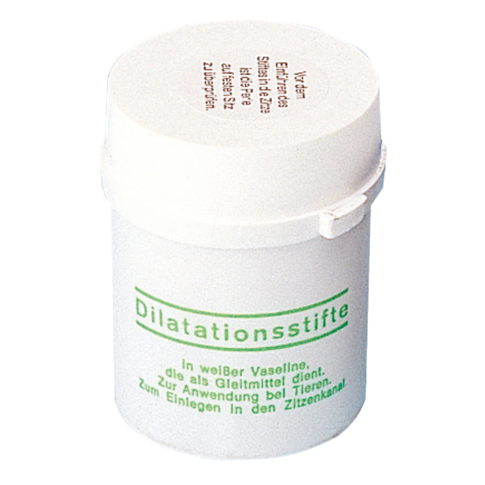 Mit Wollpolster, L = ca. 4,5 cm. Ø 2,5 mm. Das Wollpolster verhindert ein Herausfallen und Drucknekrosen im Strichkanal. Kunststoffdose zu 20 Stk. Vaselinetrennfach.
