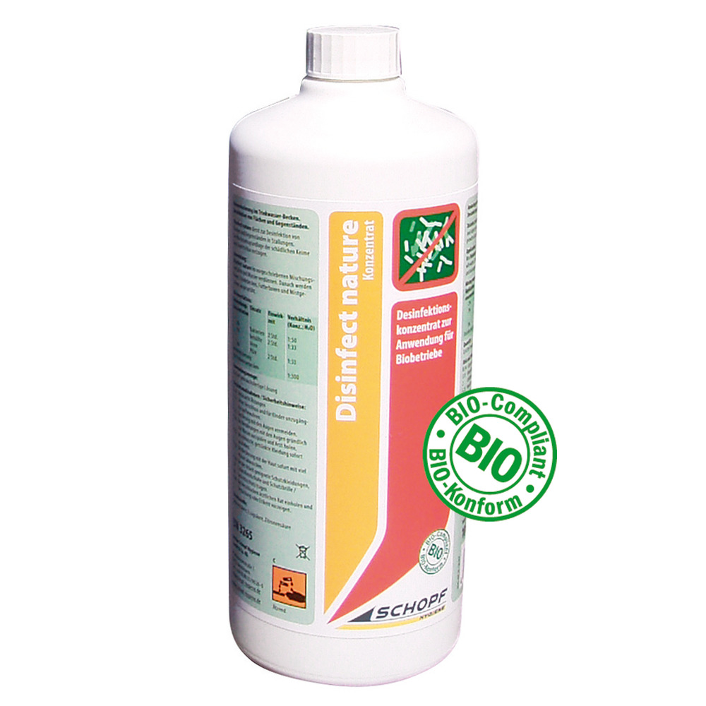 Anwendungsbereich: Disinfect nature im vorgeschriebenen Mischungsverhältnis mit Wasser verdünnen. Danach werden Boxen, Tränkebecken, Futterboxen und Mistgestänge ausgesprüht.