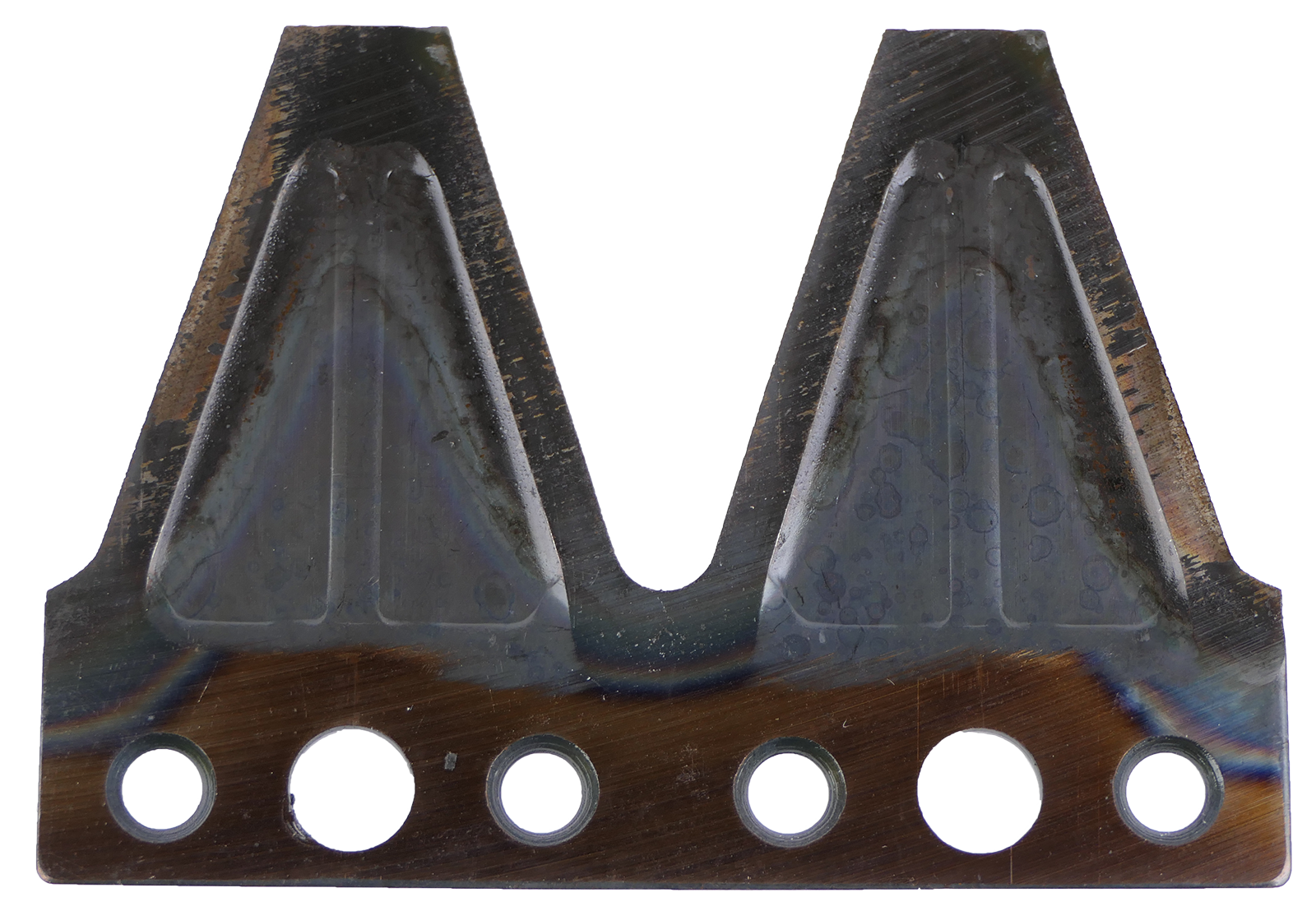 Doppelklinge 6-Loch mit 10 mm Mittelbohrung. Die Nietenbohrungen haben an der Unterseite eine Senkung.