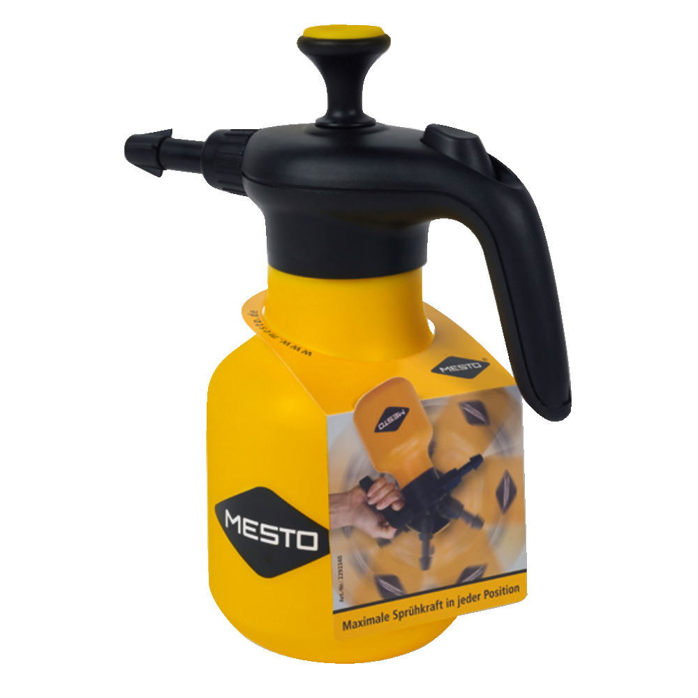 Hochwertiger Handsprüher mit 1,5 Liter Inhalt und verstellbarer Düse. Die neuentwickelte Sprühtechnik ermöglicht das Sprühen in allen Positionen (360°).