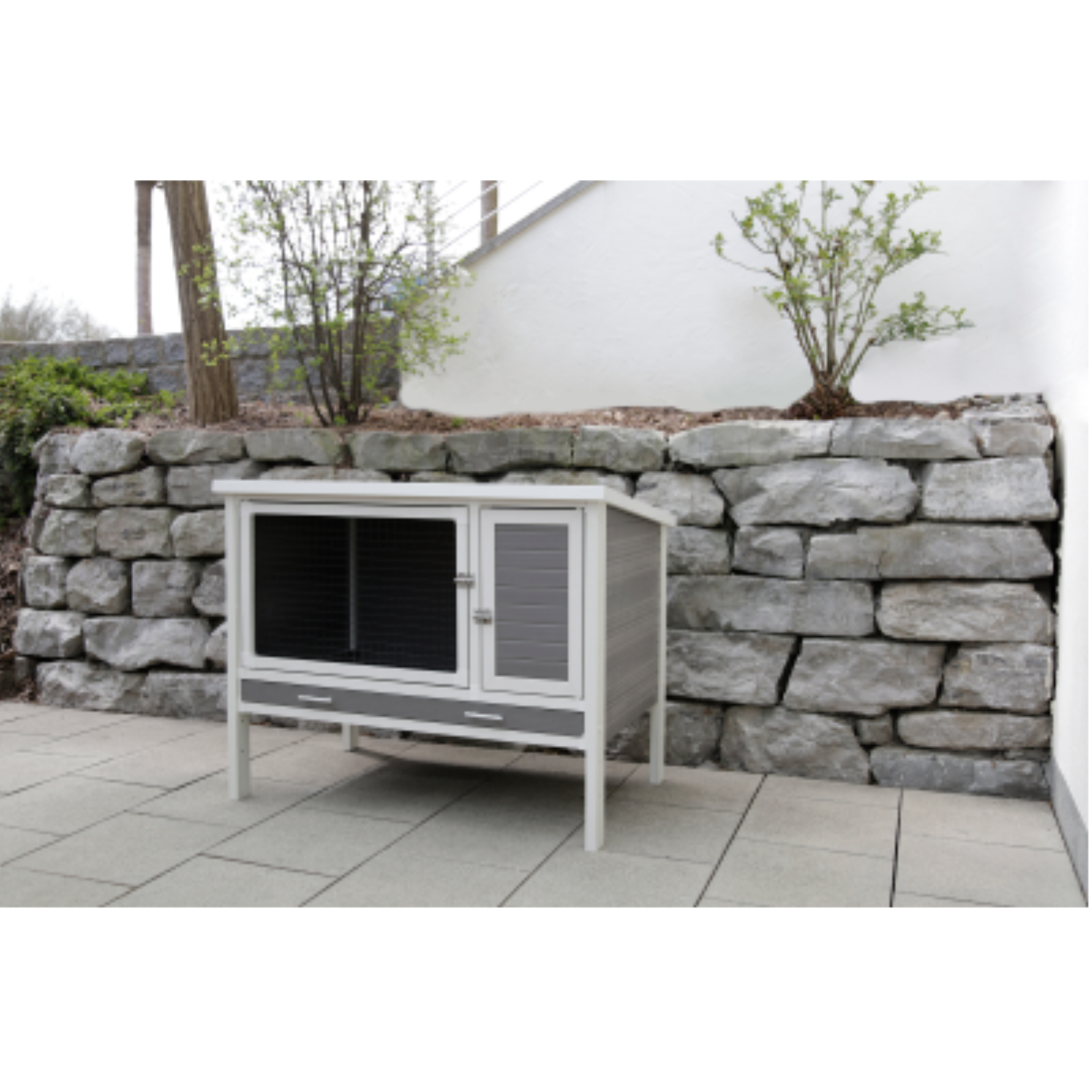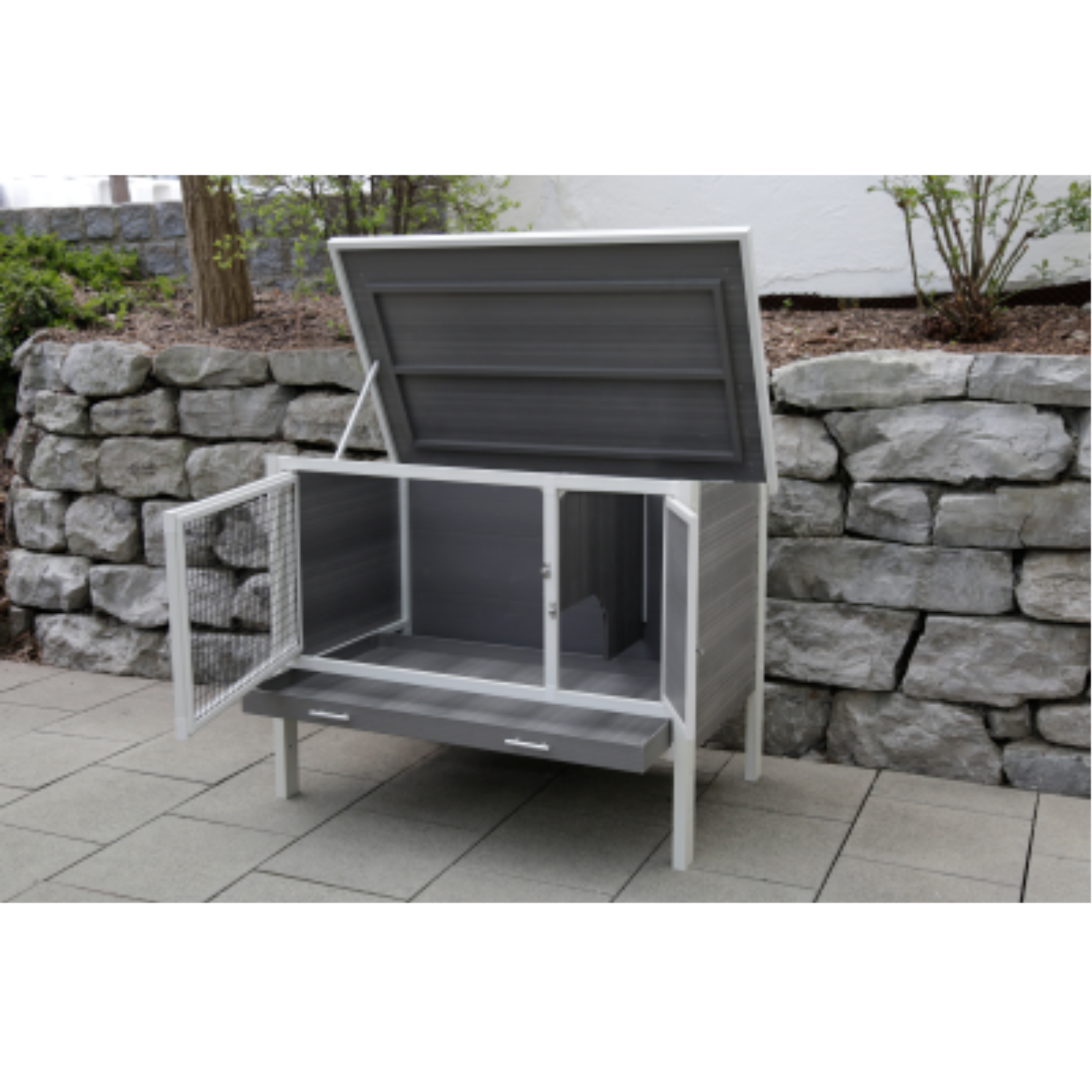 Dieser hochwertige Stall ist die ideale Wahl für Nagetiere wie Hamster, Ratten und andere Kleintiere. Funktionales Design für Ihre NagetiereZwei separat zu öffnende Türen bieten flexiblen Zugang und erleichtern die Versorgung Ihrer Tiere.Ein Durchschlupf zum Ruhebereich ermöglicht den Nagern, sich jederzeit zurückzuziehen und ungestört auszuruhen.Einfache ReinigungDie herausziehbare Kunststoffwanne mit einer Höhe von 5 cm macht die Reinigung besonders bequem und sorgt für eine hygienische Umgebung im Stall.Wetterfestes und praktisches DachDas aufklappbare Dach mit Fixierung erleichtert den Zugang und bietet zusätzliche Flexibilität bei der Pflege und Reinigung.Schnelle MontageDank vorgebohrter Löcher und Gewinde ist die Montage besonders einfach. Eine Aufbauanleitung liegt der Lieferung bei, sodass der Stall schnell einsatzbereit ist.Maße: 125 x 83 x 24 cmLieferung: Zerlegt im Karton inkl. Anbauleitung