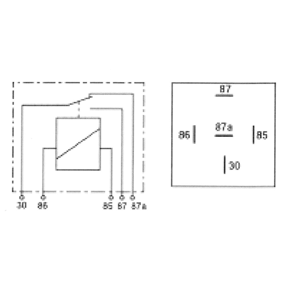 Das Einschaltrelais trennt den Arbeitsstrom vom Schaltstrom. D.h., man kann große Arbeitsströme mit relativ kleinen Strömen des Steuerkreises schalten. Dabei entsteht kein leitender Kontakt zwischen Steuer- und Arbeitskreis. Die Bedienelemente und die Verkabelung können dadurch im Steuerkreis klein gehalten werden.Anschlüsse:30 direkt von der Batterie87 Verbraucher87a Verbraucher 2, Ruhestellung, ständig über 30 mit Strom versorgt85 Masse86 von Schalter, Schaltstrom87, 87a Wechslerfunktion